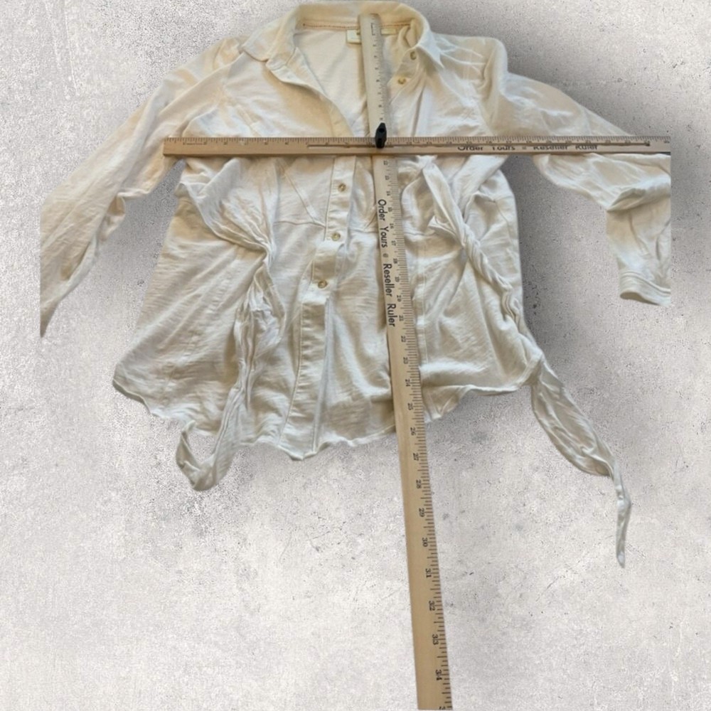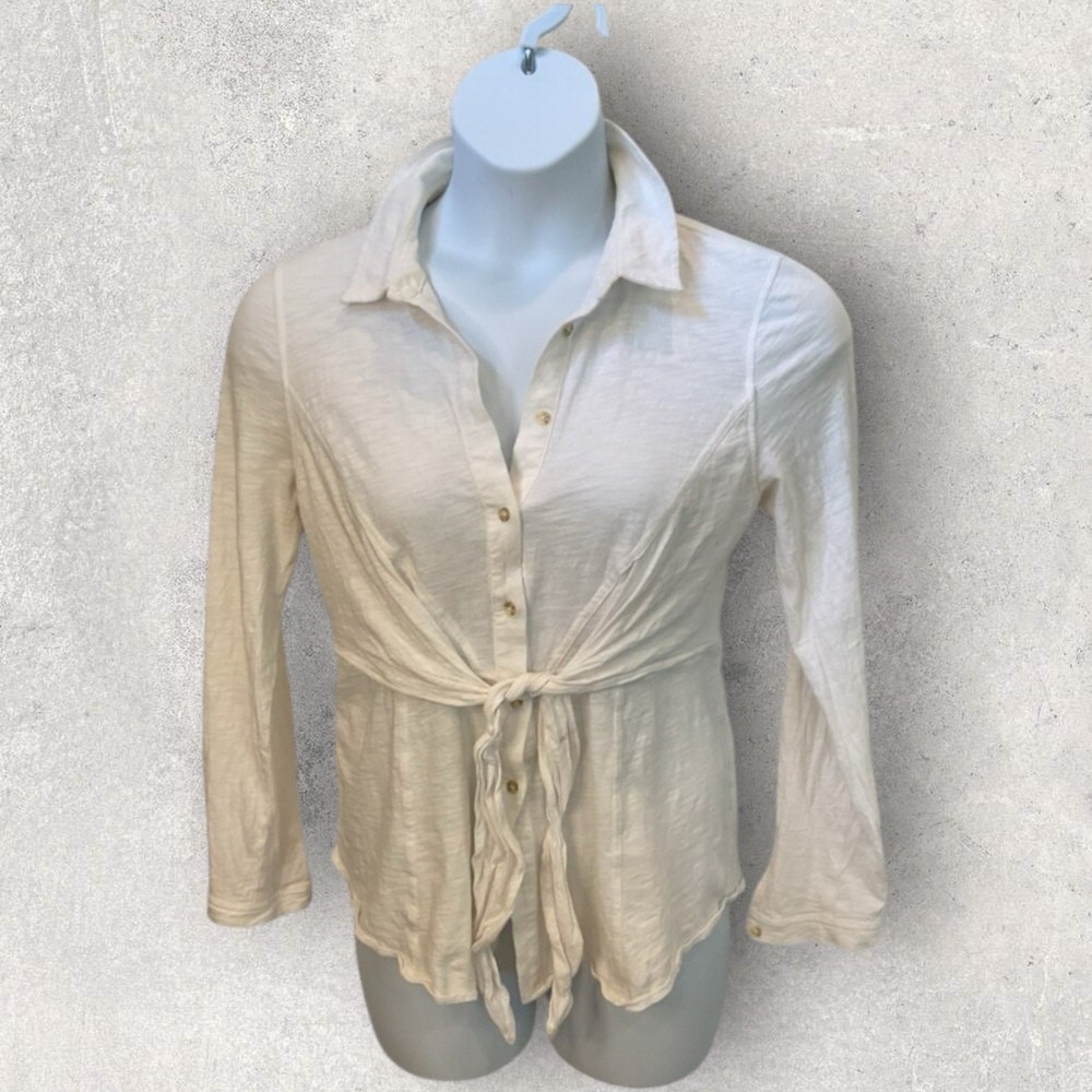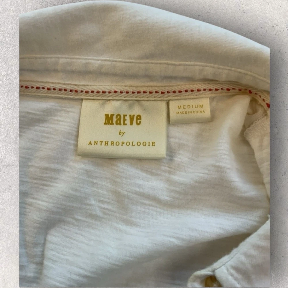 Elevate your wardrobe with this chic and breathable white blouse from Maeve by Anthropologie. Made from 100% lightweight cotton, it features a flattering front-tie detail, full button-down front, and classic collar. Perfect for layering or wearing solo for a fresh, feminine look. • Brand: Maeve by Anthropologie • Size: Medium • Color: White • Material: 100% Cotton • Style: Button front, tie waist, collared, long sleeves • Condition: Excellent pre-owned condition — no stains or flaws Pairs beautifully with jeans, skirts, or linen trousers for an effortless boho-luxe vibe. • #AnthropologieStyle • #MaeveBlouse • #BohoChicTop • #WhiteCottonBlouse