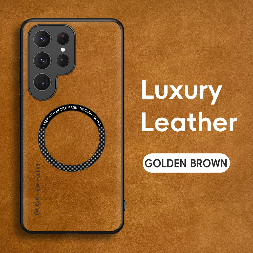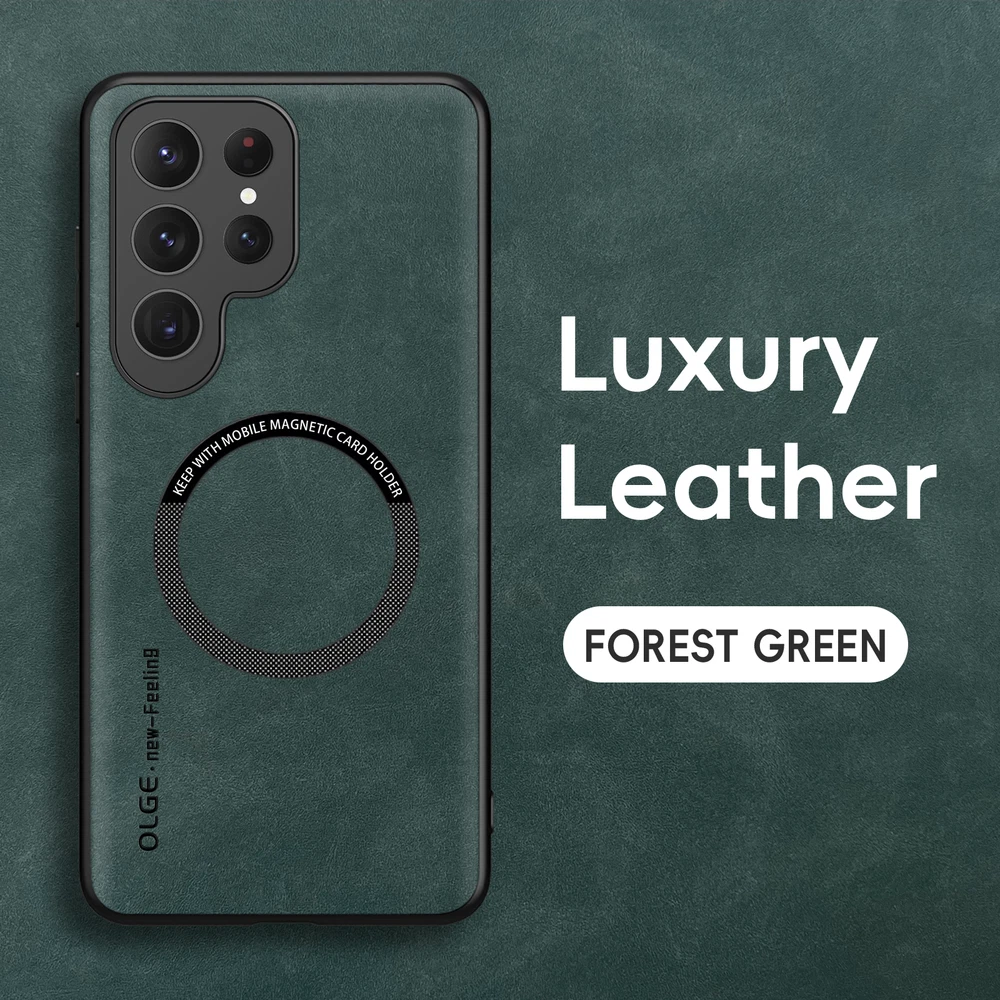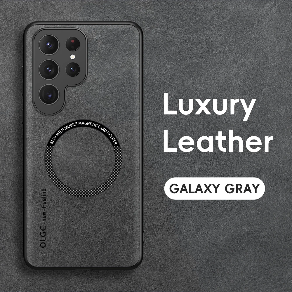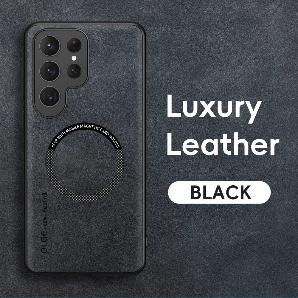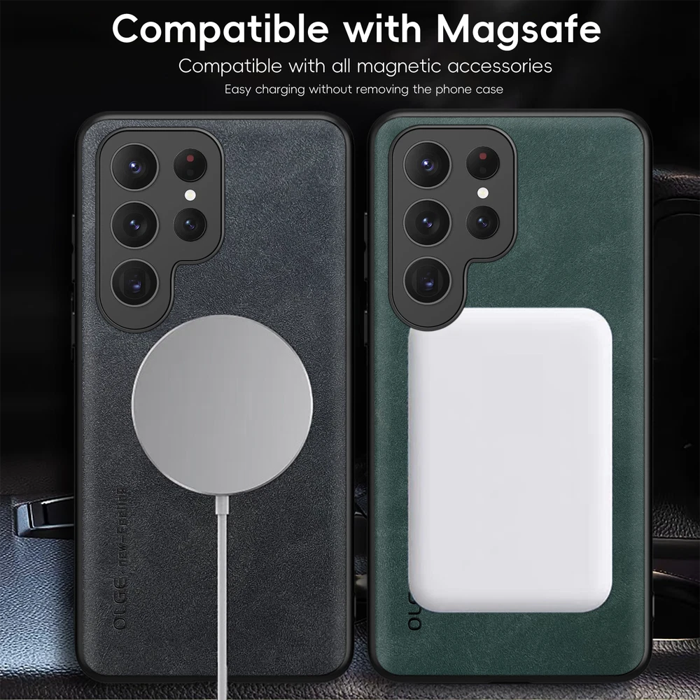 For Samsung Galaxy S24 FE S23 Ultra S22+ Mag Safe Magnetic Leather Case Cover POWERFUL MAGNETIC BACK: Built-in powerful magnet works perfectly with all magnetic accessories such as wallets, mobile power and wireless charging. MILITARY GRADE COMPREHENSIVE PROTECTION: Reinforced corners, screen and camera protection with high impact shockproof TPU. Provides a long-lasting layer of protection to shield your expensive device from dust, scratches and drops. PRECISION CUTTINGS: Customized precision cutouts allow easy access to all buttons, camera, speakers and connectors without removing the case.