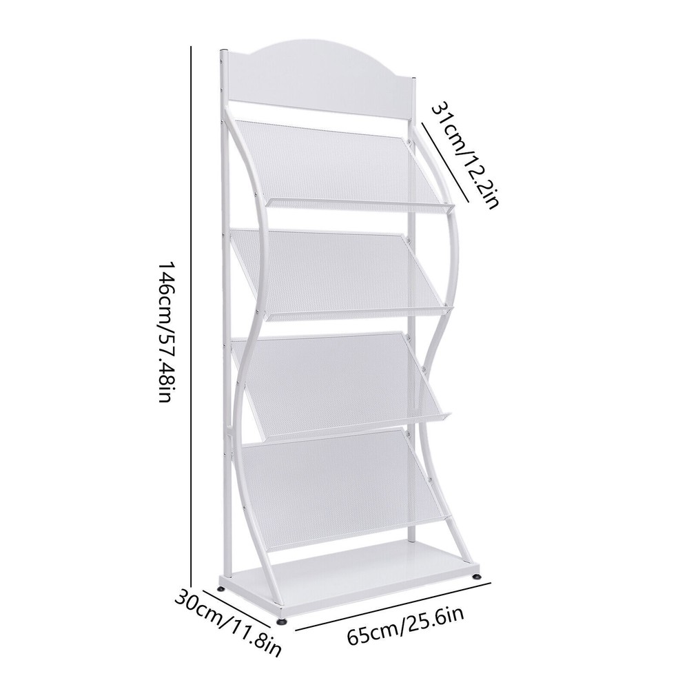 Magazine Catalog Display Holder Newspaper Stand Literature Brochure Floor Rack Description Description Are You Still Leaving Impurities and Journals Cluttered on Your Desk? Do You Look Forward to a Sleek, Solid, Large-capacity Floor-standing Magazine Rack to Help You Organize Your Magazines and Periodicals? Then Please Do Not Miss This Fashionable and Practical Floor-standing Magazine Rack. with This Floor-standing Magazine Rack, Your Office, Study, Living Room, and Bookstore Will Be Tidier! Key Features Sturdy and Durable : the Floor-standing Magazine Rack Is Made of High-quality Iron After Superb Welding, Which Is Very Sturdy and Durable. Large Capacity : the Four-layer Structure of the Floor-standing Magazine Rack Provides You with Enough Storage Space. Each Shelf Can Hold 2 A4 Manuals Side by Side at the Same Time. the Longer and Wider Shelves Can Hold up to 16 A4 Impurities per Tier. Excellent Weight-bearing Capacity : the Floor-standing Magazine Rack Thickened Iron Tube Provides a Maximum Weight-bearing Capacity of 33.06 Pounds per Tier. the Excellent Load-bearing Capacity Allows You to Use It with Peace of Mind. Convenient Access : the Floor Magazine Rack's Open Design and Proper Spacing Allow You to Get the Magazines You Want to Read at Your Fingertips. Display Function : the Floor-standing Magazine Rack's Tilted Shelves Allow Customers to Clearly See the Magazine Covers, Promoting Their Desire to Buy. Stylish Appearance : the Floor-standing Magazine Rack's Smooth S-shaped Lines and Elegant White Color Create a Stylish yet Classic Style. Such an Attractive Floor-standing Magazine Rack Is a Great Decoration for Any Place. Superb Craftsmanship : the Surface of the Floor-standing Magazine Rack Adopts Superb Sandblasting and Plastic Spraying Processes. the Sandblasting Brings a Smooth and Delicate Surface to It. Plastic Blasting Makes the Floor-standing Magazine Rack Wear-resistant and Corrosion-resistant . Strong Stability : the Unique S-shaped Iron Tube and Thickened Support bar of the Floor-standing Magazine Rack Provides Excellent Stability, Making It Solid and Non-shaky . Details Grid Design : Floor-standing Magazine Rack Shelves with Breathable Grid Design to Place Books, and Magazines Mold. and the Grid Design Can Increase the Friction with the Book so That It Is Not Easy to Fall. Nylon Anti-slip Feet : the Bottom Anti-slip Feet Are Made of Nylon, Which Can Prevent Slipping. and Nylon Cage Anti-slip Feet Can Protect the Floor from Scratches. Base : the Thickened Base Increases Both the Stability of the Floor-standing Magazine Rack and Its Placement Area. Advertising Board : the Top Billboard Can Be Diy According to Demand, Which Not Only Exercises the Hands-on Ability but Also Increases the Decorative Nature of the Floor-standing Magazine Rack. Galvanized Iron Screws : the Screws Are Made of Galvanized Iron and Are Made to Take into Account Laminations. Electroplated Screws Are More Durable and Can Extend the Life of the Floor-standing Magazine Rack. Application The Floor-standing Magazine Rack Is Suitable for Displaying and Storing Books, Impurities, Newspapers, Periodicals, Etc. Its Beautiful Shape and Large Capacity Make It Suitable for Homes, Bookstores, Libraries, Schools, Etc. Specification Model: 209 Material: Iron, Galvanized Iron Color: White Style: Minimalist, Industrial Mounting Type: Floor-standing Number of Layers: 4 Surface Treatment: Sandblasting, Spraying Process Single Shelf Capacity: 15kg/33.06lbs Gross Weight: 5kg/11.02lbs Package Size: 142*34*7cm/55.90*13.38*2.75in Product Size: 65*30*146cm/25.59*11.81*57.48in Advertising Board Size: 60.5*18cm/23.81*7.08in Single Board Size: 60.5*31cm/23.81*12.20in Installation Unscrew the Screws at Both Ends of the Round Tube. Fix the Round Tube Between the Left and Right Supports. Fix the Billboard Between the Left and Right Supports. Fix the Grid Layer in Turn Between the Left and Right Brackets to Complete the Installation. Package Included 1*Base Plates 2*Stands 4*Mesh Plates 1*Advertising Board All Accessories Required for Installation Notes Please Allow the Slight Color Difference Caused by the Shooting Light and 1-3cm Error Due to Manual Measurement. Please Make Sure You Do Not Mind Before You Order. Payment Delivery details Terms of sales About us Contact us Payment We accept ebay payment 。 Fees such as import duties, taxes are not included in the item price or shipping costs. These charges are the buyer's responsibility. Delivery details Shipping: 2-9 working days to: USA Terms of sales We maintain high standards of excellence and strive for hundred percent customer satisfaction. Feedback is very important to us. We hope that you contact us immediately before you give neutral or negative feedback, so that we can address your concerns. It is impossible to address issues if we do not know about them! About us Your satis faction is our ultimate goal. We work hard to earn your trust and future business. Our certified technicians have tested each item before shipping. The unit comes with 1 year limited warranty on all manufacturing defects. a) If you receive a defective item, you may return it or ask for a discount. Please contact us within 14 days after you receive the package. b) What you returned must be intact and in its original packaging as re? u. Customer is responsible for shipping costs of the returned item. c) We will cover the cost of shipping back t with the shipping rate indicated in the registration page. We will send you a new unit or refund the full payment you paid. Thank you. Contact us Business Hour Business Hour: Monday To Friday: 8:30 AM to 5:00 PM (Beijing China time) Due to time zones, our reply to your questions may not be immediately. But within above working time, we will reply your email within 24 hours. If it's non-workdays, please kindly be patient and wait till Monday. Please contact us with ebay message. Please feel free to contact us if you have any questions. Monday To Friday: 8:30 AM