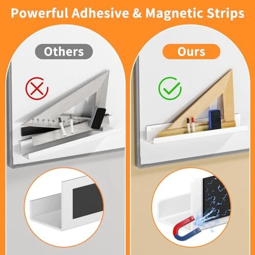 Return Policy Fast Delivery Trusted seller Magnetic Book Shelf for Whiteboard, Reusable Acrylic Book Display Shelf with Strong Adsorption Capacity, Magnetic Book Holder for Classroom Refrigerator Office Teacher Kids, White Product Description 【Strong Adhesive and Thick Magnetic Strips】 Our magnetic book display shelf features a powerful adhesive and 2mm thick magnetic strips, ensuring a secure hold and preventing any unexpected dropping. It can support up to 8.8lbs of weight without any worries. 【Durable and Easy to Clean】 Made from high-quality acrylic material with a thickness of 3mm, our magnetic book holders is resistant to oxidation and easy to clean. It is built to last, providing you with a long-lasting tool. 【Convenient Size and Design】 With dimensions of 17*2.2*2.2 inches and a curved edge design, our magnetic display shelves allows for organized placement of books and teaching supplies. The 0.75 inch height provides a barrier to prevent items from falling off. 【No Drilling Required】 The magnetic design of this magnetic book shelves eliminates the need for drilling holes in walls or tables. Simply open the package and start using the shelf right away. It's incredibly convenient. 【Versatile and Ideal Gift】 This magnetic floating shelf can be used in various settings such as classrooms, kitchens, and offices. Whether you want to display books, magazines, or office supplies, it can meet your needs. It also makes a great gift for family and friends. Shipping Returns Payment Shipping Shipping is FREE to all addresses other than APO/PO boxes in the lower 48 states. All our stock ships from US-based warehouses. Shipped via USPS or UPS (depending on location and package weight) Unless stated otherwise, all orders will ship within 24-72 hours of your payment being processed. Check our feedback to see the great reviews of FAST shipping we offer. Returns Seller does not accept returns Payment We currently accept payment via eBay managed payments only. Once payment is cleared, we will dispatch your shipment within 1-3 business days. Please refer to the "Shipping" tab for more information regarding shipping speed to your destination.