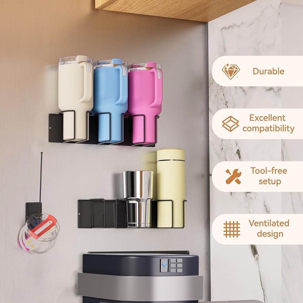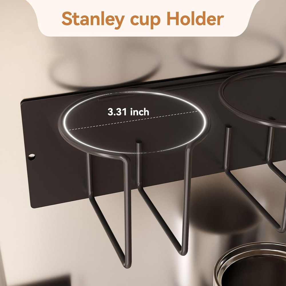 This magnetic cup holder set is a game-changer for keeping my Stanley tumbler organized! The strong magnets hold tight to my fridge without drilling, and the two racks plus lid hook keep everything neat. Perfect for quick access in the kitchen or garage—no more cluttered countertops. The black carbon steel looks sleek, and setup took seconds. Highly recommend for Stanley fans!
