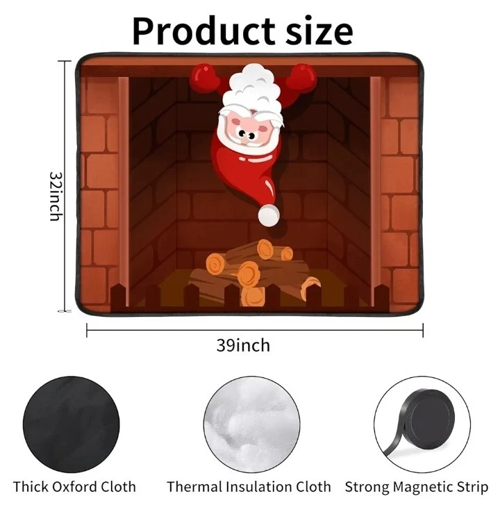 ENERGY SAVING: Keeps your fireplace surround completely airtight, effectively blocking outdoor gases and debris from entering. In the winter, it keeps cold air out, preventing heat loss and keeping the room warm. In the summer, keep cool air in the room at all times to stay cool, helping you save money by using less air conditioning. POWERFUL MAGNET: This 39'' x 32'' fireplace covers come with a strong magnetic strip that is long enough to keep the blanket firmly in place around the fireplace, creating an airtight space and preventing it from shifting or falling out. (Please make sure your fireplace surround is made of iron) EASY TO INSTALL: The magnets have a good adhesive material on them, install the magnetic strips on the blanket and then fix the blanket firmly on the fireplace. The magnets have a strong magnetic force and will not fall off over time. The fire place cover is easy to organize and store and can be reused for many years. This fireplace screen cover is made of high quality thickened flame retardant oxford fabric, filled with high quality sponge, which can provide some prevent cold/hot airflow into the room. Use full-surround powerful magnets to secure it to the fireplace, sturdy and durable, perfect for when the fireplace is unused. Fireplace covers indoor with holiday features will you dress up your fireplace. Don't let your fireplace be an empty display when Christmas comes, it's an important part of the home and he should be an important place filled with holiday cheer.