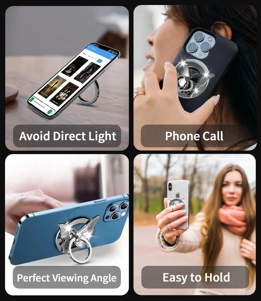 -Brand New - Never Used - Questions: Feel free to ask any Questions - BOX: Never Opened - DESCRIPTION: Ultra Strong Magnetism:Phone Grip comes with a super strong magnetic ring to hold iPhone 15/14/13/12 series and magnetic cases securely, you don't have to worry about your phone falling off. Magnetic ring fits as soon as it is attached. And it leaves no sticky residue. Even with a metal ring installed, wireless charging will not be affected Stylish Decoration:Phone holder's the perfect combination of fashion and function. The high quality silver glitter material on the phone holder shines like a diamond, perfect for the sparkling you! Whether you are travelling or using it daily, it will add colour to your attire and photos 180 sliding & 360 Rotation:phone finger holder has 360° rotation and 180°F sliding folding function, you can take photos,read and watch videos in different viewing angles. The mobile phone ring light allows you to touch more positions on the screen with one-handed operation. Suitable for multiple scenes Compatible with All Phones:The finger ring grip can be directly attached to iPhone 15, 15 Plus, 15 Pro, 15 Pro Max, iPhone 14, 14 Pro, 14 Pro Max, iPhone 13, 13 Pro, 13 Pro Max, 13 Mini, iPhone 12, 12 Pro, 12 Max, 12 Mini. Pro, 12 Pro Max, 12 Mini, or magnetic phone cases. The magnetic ring clip is also compatible with non-magnetic phones and standard cases with a thin metal ring on the back (included in the package) - OFFERS: Reasonable offers are considered, LOWBALLERS, Best price and Lowest askers will be ignored - all sales final/no refunds/ no exchanges/ no returns - Disclaimer: I do not own the brand's trademarks, logos, pictures, or products posted. I do not intend to infringe on copyright. I find such content available on the internet. Contents are considered fair use. -BBD Magnetic Phone Grip Butterfly Phone Ring Holder with Metal Ring Stylish Twinkle Tick Tock 360°Rotating iPhone Ring Grip Compatible iPhone 15/14/13/12/Plus/Pro/Pro Max,Android,MagSafe Accessories
