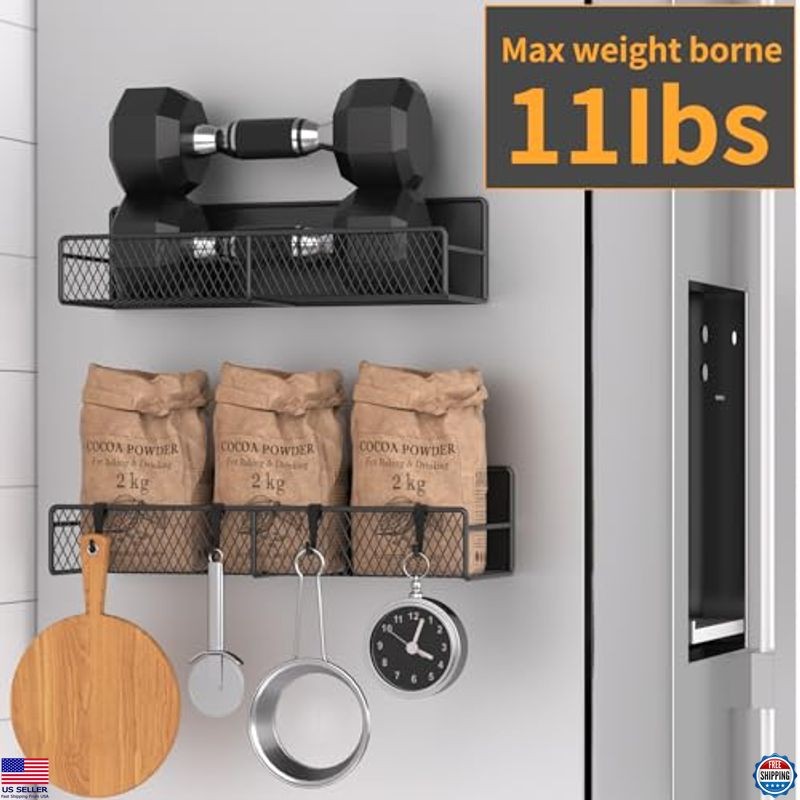 Magnetic Spice Rack for Refrigerator, 2 Pack 100% Metal Strong Magnet Shelf Black, Moveable Spice Organizer with Hooks, Magnetic Fridge Shelf for Kitchen Home Laundry Room Organization and Storage Description Experience unparalleled performance with our premium product, designed to elevate your everyday tasks. Crafted with precision and quality, this item promises durability and efficiency, making it a must-have for enthusiasts and professionals alike. Don’t miss out on the opportunity to enhance your setup with this exceptional choice! Product reference: B0DMK15B1V. Features 2 Packs Magnetic Kitchen Helper. This kit has a wide range of functions, including 1×Large Spice Rack, 1×Medium Spice Racks and 4 hooks to meet the classification and placement needs of different items. Built to Last, Designed for You. Made with 4.5mm thick steel frames (100% metal structure, 2x thicker than plastic rivals) and a smooth epoxy coating that resists water, oil, and rust. Every weld and edge is CNC-smoothed for industrial-strength performance. Strong Magnets, No Drilling Needed. Powerful rubber magnets on the back hold tight to your fridge, washer, or any metal surface – even when fully loaded. No tools, no hassle – just stick and go. Perfect for renters or anyone who loves a quick setup. Smart Grid Design, No Mess. The clever steel grids (diamond pattern) keeps your spices and tools in place while letting air flow through. No more spills or trapped moisture – just neat and tidy storage. Fits Everywhere, Works Everywhere. From your kitchen to your laundry room, office, or even your RV, this organizer adapts to your life. Its slim design fits tight spaces, and you can move it anytime you need. The powder-coated metal body withstands -20℃~80℃. More Space, Less Stress. Stack the racks vertically to save counter space or spread them out for easy access. Whatever your kitchen needs, this set has you covered. Safe for Your Family, Safe for Your Home. Rounded edges and a smooth finish mean no sharp corners or rough spots. Plus, the strong magnets keep everything secure – no slips, no falls. Shipping Free & Fast Shipping: We offer free shipping to most of the USA with a normal delivery time of 3-7 days. However, due to the current situation, additional delivery time (up to 3 weeks) may be required for some items. Alternative Carriers: We may use alternative carriers (e.g., USPS, FedEx, UPS) to ensure your package arrives safely and on time. Due to the use of multiple carriers, we are unable to provide a tracking number automatically. Handling Time: Orders are processed and shipped within 1-2 business days of receiving cleared payment. Shipping Restrictions: Shipping to Alaska, Hawaii, Puerto Rico, Guam, and other US territories may incur shipping charges or delivery restrictions. Please contact us before ordering, or your order can be refunded/cancelled. State Restrictions: Certain items may not be shipped to California due to state regulations. Contact for Tracking Updates: If you require tracking updates or have any concerns about the delivery of your order, please feel free to contact us, and we will be happy to assist you. Return Policy 30-Day Hassle-Free Returns: If you are not completely satisfied with your purchase, you can return the item for free within 30 days of receiving it for a full refund or exchange. Easy Return Process: Contact us, and we will provide you with a prepaid return shipping label and detailed instructions. No Restocking Fee: There are no restocking fees for returns. However, the buyer is responsible for return shipping costs if the return is not due to...