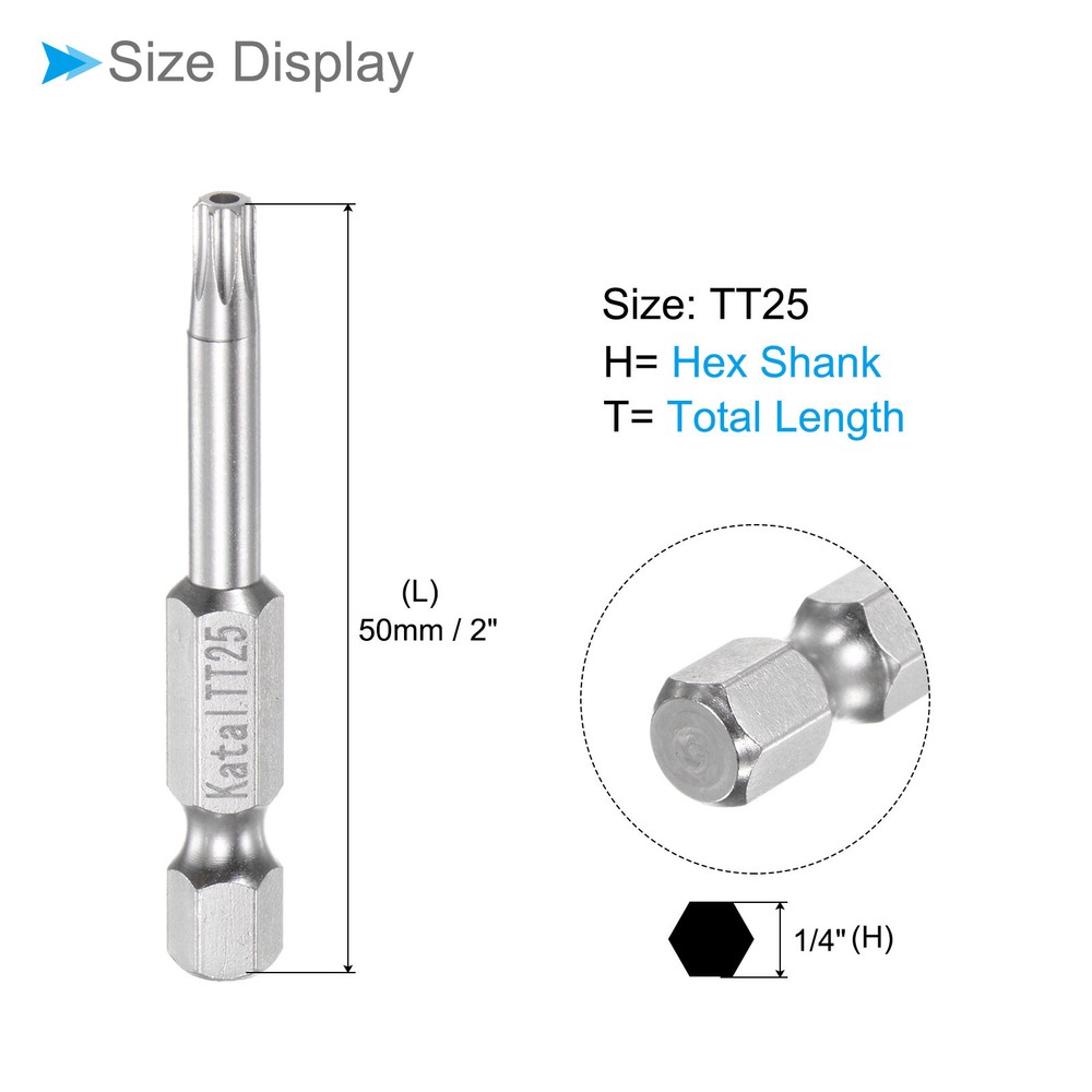 Document Attributes:* Material: S2 Alloy Steel* Size: TT25* Hex Shank: 1/4"* Total Length: 50mm / 2"What Is Included:* 2 Pieces x Magnetic Security BitApplications & Features:--- Screwdriver bits set can be used in furniture installation, car maintenance, electronic factory, office installation, kitchen installation, etc.--- The magnetic bit tip can hold the screw securely before installation and after removing the screw to improve efficiency.--- Security bits are made of S2 alloy steel, with good toughness, the surface of the security torx bit set is nickel plating treatment for good anti-rust and wear-resistant and durability, and is suitable for industrial use.Useful Tips:--- Do not turn the screws with mismatched sizes to avoid damage to both the screw and the drill. Magnetic Star 7 Point Bits TT25 S2 Steel 7 Point Torx Screwdriver Bits 2pcs Attributes: * Material: S2 Alloy Steel * Size: TT25 * Hex Shank: 1/4" * Total Length: 50mm / 2" What Is Included: * 2 Pieces x Magnetic Security Bit Applications & Features: --- Screwdriver bits set can be used in furniture installation, car maintenance, electronic factory, office installation, kitchen installation, etc. --- The magnetic bit tip can hold the screw securely before installation and after removing the screw to improve efficiency. --- Security bits are made of S2 alloy steel, with good toughness, the surface of the security torx bit set is nickel plating treatment for good anti-rust and wear-resistant and durability, and is suitable for industrial use. Useful Tips: --- Do not turn the screws with mismatched sizes to avoid damage to both the screw and the drill. Hot Item Payment 1.We accept eBay payment . 2.Payment must be received within 7 business days of auction closing. Shipping 1.We ship to your eBay or Paypal address. Please make sure your eBay and Paypal address is correct before you pay. 2.Items will be shipped within 1-3 business day when we received payment. 3.Delivery time depends on destination and other factors. Description Policy Magnetic Star 7 Point Bits TT25 S2 Steel 7 Point Torx Screwdriver Bits 2pcs Attributes: * Material: S2 Alloy Steel * Size: TT25 * Hex Shank: 1/4" * Total Length: 50mm / 2" What Is Included: * 2 Pieces x Magnetic Security Bit Applications & Features: --- Screwdriver bits set can be used in furniture installation, car maintenance, electronic factory, office installation, kitchen installation, etc. --- The magnetic bit tip can hold the screw securely before installation and after removing the screw to improve efficiency. --- Security bits are made of S2 alloy steel, with good toughness, the surface of the security torx bit set is nickel plating treatment for good anti-rust and wear-resistant and durability, and is suitable for industrial use. Useful Tips: --- Do not turn the screws with mismatched sizes to avoid damage to both the screw and the drill. Hot Item Payment 1.We accept eBay payment . 2.Payment must be received within 7 business days of auction closing. Shipping 1.We ship to your eBay or Paypal address. Please make sure your eBay and Paypal address is correct before you pay. 2.Items will be shipped within 1-3 business day when we received payment. 3.Delivery time depends on destination and other factors.