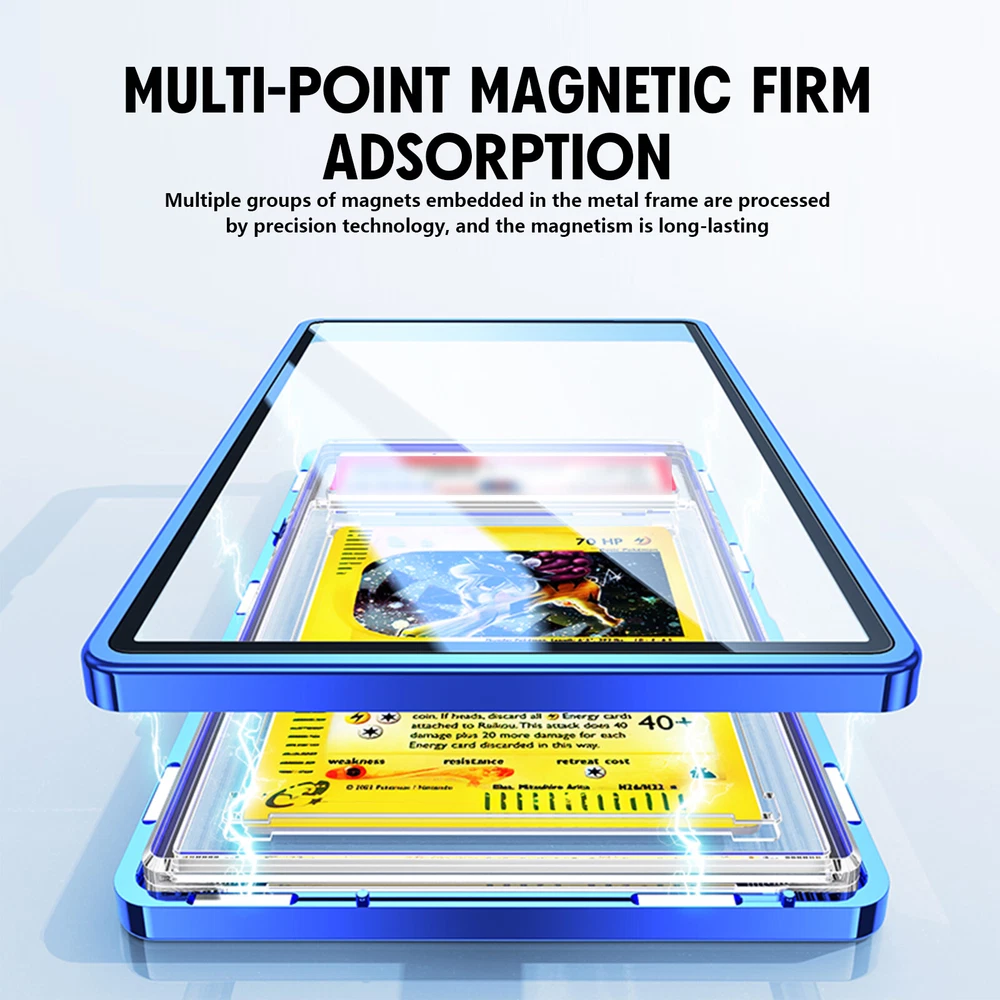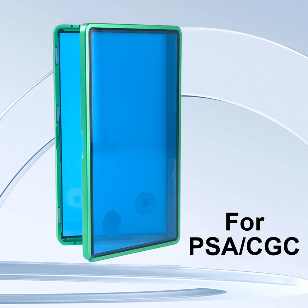 Graded Cards Protector Stackable Magnetic Trading Cards Case for BGS/PSA Slabs Usage and purchasing tips: 1. Please remove the Blue protective film on both sides of the glass before use. Due to the difference between different monitors, the picture may not reflect the actual color of the item. 2. If you want a protector for CGC Slab, please choose the one with PSA specification. 3. For PSA Graded Card Holder: Slab Size Do not exceed 135 x 80 x 7.5 mm(5.31 x 3.15 x 0.30 inches) For BGS Graded Card Holder: Slab Size Do not exceed 131 x 84 x 9 mm(5.16 x 3.31 x 0.35 inches) Superior Protection: The graded card protector features a metal frame and high aluminum glass, offering robust protection against scratches and UV rays to keep your cards in pristine condition. Magnetic Closure and Stackable Design: The magnetic closure securely holds your cards in place, while the stackable design allows for efficient storage and organization of your collection. Versatile Compatibility: This protector meets PSA/BGS/CGC grading standards and is suitable for a wide range of cards, including sports cards (baseball, football, hockey, basketball), and MTG cards, BGS/PSA/CGC cards. Multi-Color Bumper Case: Available in various colors, the bumper case adds an element of personalization while ensuring comprehensive protection for your valuable graded cards. Exceptional Customer Service: We are committed to providing you with the best shopping experience possible. If you have any questions or concerns about our products, compatibility, or anything else, our dedicated customer service team is here to assist you every step of the way. Your satisfaction is our top priority. Product Description: Material:Aluminum,alloy and glass Color: Black/Red/Golden/Sliver/Blue/Green /Purple/Orange Pachage weight: About 74g/2.65oz Product Size:For BGS protector, is about 13.73*8.97*1.19cm(5.4*3.53*0.47inch) For PSA /CGC protector,is about 14.17*8.66*1.05cm(5.58*3.4*0.41inch) Package include: 1x Card Protector Note: 1.Due to manual measurement, there may be slight errors in product size.