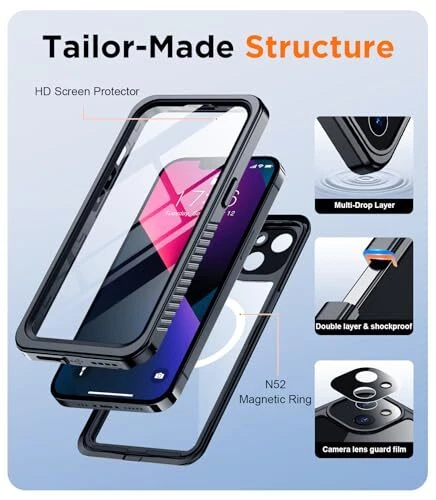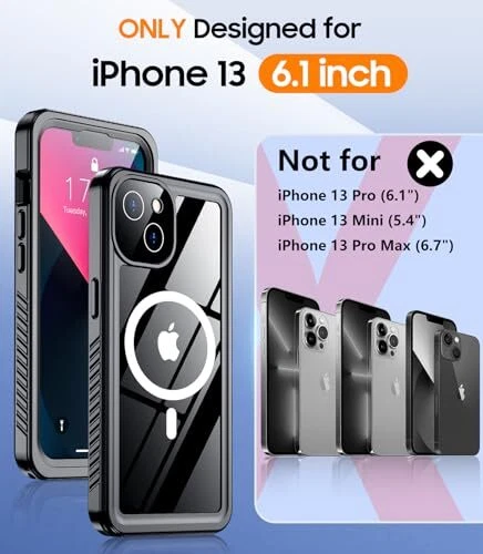 Return Policy Fast Delivery Trusted seller Magnetic for iPhone 13 Case Waterproof,Built-in Screen Protector[IP68 Underwater][Upgrade Military Dropproof][Compatible with MagSafe] Full Body Shockproof for Phone Case 6.1''- Black Product Description 【IP68 Waterproof】The iPhone13 case is certified with an IP68 waterproof rating, allowing it to be submerged up to 10ft/3m for one hour while providing protection against dust, dirt, water, snow, and rain. Its comprehensive body protection design enables underwater photography and videography. Additionally, the washable feature facilitates easy cleaning, ensuring that both your phone and case maintain a pristine appearance while safeguarding against scratches and fading 【360 Full Body Protection】The iPhone 13 shockproof case has been rigorously tested to exceed Military Grade Drop Test standards at heights of over. Constructed from premium TPU/PC and PET materials with a specialized double-layer frame, this case s maximum durability without yellowing over time. The four anti-collision corners are designed to disperse up to 99% of impact force, effectively protecting your device from damage. Furthermore, this durable iPhone 13 case includes a detachable lanyard to prevent accidental drops 【Strong Magnet & Secure Grip】The MagSafe-compatible case for the iPhone 13 features a robust magnetic ring that enhances connectivity with most MagSafe accessories such as wireless chargers, magnetic car mounts, battery banks, wallets, and more. This allows you to charge without removing the case; perfectly aligned magnets facilitate faster and easier wireless charging than ever before while providing a secure grip 【Ultra-Clear Original Sound Quality】Meticulously engineered for precise alignment with speakers, buttons, and cutouts on the iPhone 13 case ensures optimal sound quality. The upgraded design allows simultaneous access to both the silicone plug covering the bottom sound hole and the charging port cover for improved call clarity—without compromising volume levels—enabling uninterrupted music enjoyment along with clearer call quality 【HD Built-in Screen & Camera Protector】This iPhone 13 waterproof case incorporates a built-in screen protector made of tempered glass measuring just 0.33mm thick which maintains an impressive response sensitivity of 99.99% without scratching easily. A specially crafted black camera lens protector offers substantial defense against high-impact forces while enhancing photo aesthetics by preserving image clarity; its thoughtful design includes raised lips measuring 2.5mm around the camera area and bezels of approximately 1.5mm surrounding the back screen—providing extensive overall protection Shipping Returns Payment Shipping Shipping is FREE to all addresses other than APO/PO boxes in the lower 48 states. All our stock ships from US-based warehouses. Shipped via USPS or UPS (depending on location and package weight) Unless stated otherwise, all orders will ship within 24-72 hours of your payment being processed. Check our feedback to see the great reviews of FAST shipping we offer. Returns Seller does not accept returns Payment We currently accept payment via eBay managed payments only. Once payment is cleared, we will dispatch your shipment within 1-3 business days. Please refer to the "Shipping" tab for more information regarding shipping speed to your destination.