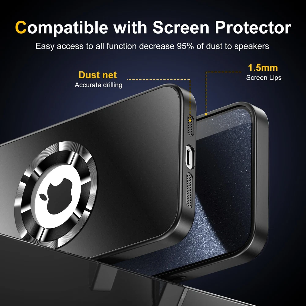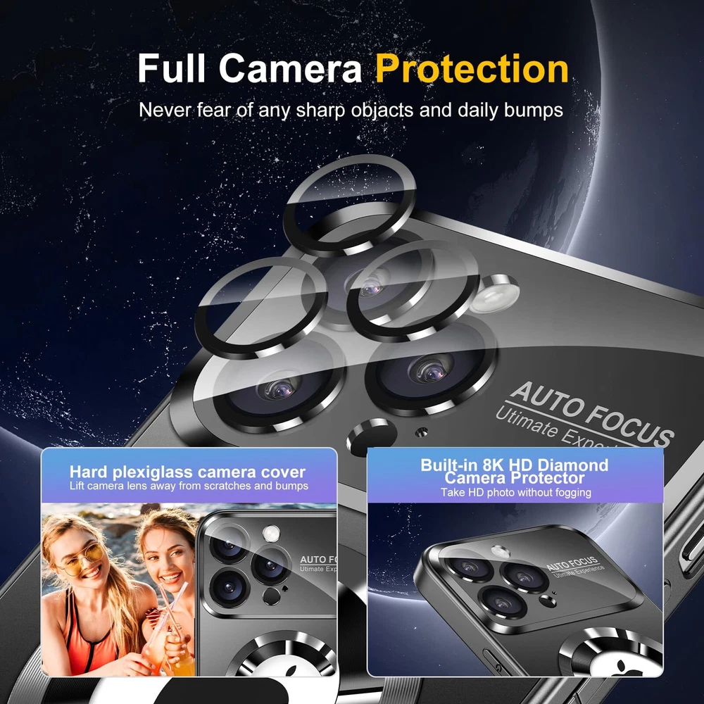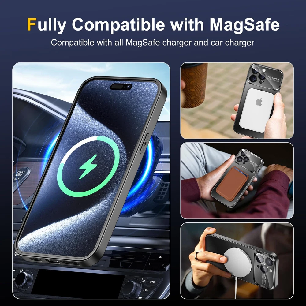 Magnetic for iPhone 13 Pro Max Case Magsafe with Full Camera Cover Lens Protector Logo View Scratch Resistant Frosted Slim Shockproof Protective Phone Case 【Strong Magnetic Strength】This for iPhone 13 Pro Max Case is built-in upgraded 3rd generation magnet ring,which is fully compatible with all MagSafe accessories and chargers from third party. Its strong magnets support automatically aligning and tight adsorption,you don't have to worry the phone fall off or shake from 【Reinforced Camera Protection】The full camera cover board is made from high-hardness plexiglass equiped with 8K HD tempered glass camera lens protector. It offers strong protection for camera lens but doesn't interfere with photoshooting. 【High Strength Back Board】The back board is made from high strength anti-glare polycarbonate,it's scratch resistant and impact resistant.It keeps in new condition overtime. 【Silky Touch & Tactile Buttons】The back board and soft bumper are specially treated with nano-oleophpbic coating which ensures for silky touch without fingerprints and stains left.All buttons are ergonomic designed for easy pressing just like original. 【Perfect Fit & Dustproof】This matte for iPhone 13 pro max phone case is perfectly compatible with screen protector. With a little raised lips wraps around screen edges,this case perfectly fits your phone with no interference to screen protector. Besides,the dustproof design for speakers can block 95% of stains and dust but free the sound as bare phone.