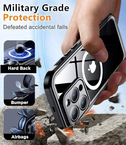 Return Policy Fast Delivery Trusted seller Magnetic for iPhone 14 Pro Case Waterproof,Built-in Screen Protector[IP68 Underwater][Upgrade Military Dropproof][Compatible with MagSafe] Full Body Shockproof for Phone Case 6.1'' - Black Product Description 【IP68 Waterproof】The iPhone14 Pro case is certified with an IP68 waterproof rating, allowing it to be submerged up to 10ft/3m for one hour while providing protection against dust, dirt, water, snow, and rain. Its comprehensive body protection design enables underwater photography and videography. Additionally, the washable feature facilitates easy cleaning, ensuring that both your phone and case maintain a pristine appearance while safeguarding against scratches and fading 【360 Full Body Protection】The iPhone 14 Pro shockproof case has been rigorously tested to exceed Military Grade Drop Test standards at heights of over. Constructed from premium TPU/PC and PET materials with a specialized double-layer frame, this case s maximum durability without yellowing over time. The four anti-collision corners are designed to disperse up to 99% of impact force, effectively protecting your device from damage. Furthermore, this durable iPhone 14 Pro case includes a detachable lanyard to prevent accidental drops 【Strong Magnet & Secure Grip】The MagSafe-compatible case for the iPhone 14 Pro features a robust magnetic ring that enhances connectivity with most MagSafe accessories such as wireless chargers, magnetic car mounts, battery banks, wallets, and more. This allows you to charge without removing the case; perfectly aligned magnets facilitate faster and easier wireless charging than ever before while providing a secure grip 【Ultra-Clear Original Sound Quality】Meticulously engineered for precise alignment with speakers, buttons, and cutouts on the iPhone 14 Pro case ensures optimal sound quality. The upgraded design allows simultaneous access to both the silicone plug covering the bottom sound hole and the charging port cover for improved call clarity—without compromising volume levels—enabling uninterrupted music enjoyment along with clearer call quality through our protective cg. Note: The special button is not scrollable for zooming in/out; it is intended solely for taking photos 【HD Built-in Screen & Camera Protector】This iPhone 14 Pro waterproof case incorporates a built-in screen protector made of tempered glass measuring just 0.33mm thick which maintains an impressive response sensitivity of 99.99% without scratching easily. A specially crafted black camera lens protector offers substantial defense against high-impact forces while enhancing photo aesthetics by preserving image clarity; its thoughtful design includes raised lips measuring 2.5mm around the camera area and bezels of approximately 1.5mm surrounding the back screen—providing extensive overall protection Shipping Returns Payment Shipping Shipping is FREE to all addresses other than APO/PO boxes in the lower 48 states. All our stock ships from US-based warehouses. Shipped via USPS or UPS (depending on location and package weight) Unless stated otherwise, all orders will ship within 24-72 hours of your payment being processed. Check our feedback to see the great reviews of FAST shipping we offer. Returns Seller does not accept returns Payment We currently accept payment via eBay managed payments only. Once payment is cleared, we will dispatch your shipment within 1-3 business days. Please refer to the "Shipping" tab for more information regarding shipping speed to your destination.