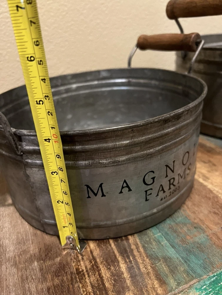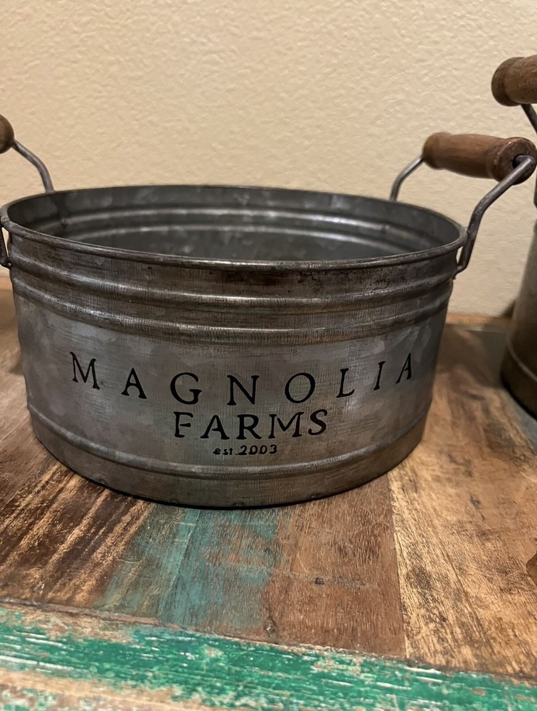 This is a set of beautiful Magnolia Farms tins that will make a great addition to your collection. The tins feature the Magnolia Farms branding and are perfect for storing small items or adding a touch of charm to your decor. These tins are highly sought after and are sure to impress any collector. The set includes a variety of sizes and designs, making it a great assortment for any taste. Whether you're a collector or just looking for unique decor pieces, these Magnolia Farms tins are sure to impress.
