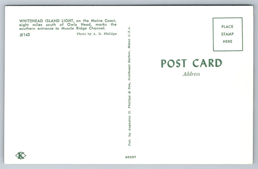 Maine Cape Whitehead Island South of Owl's Head Lighthouse Postcard, C4 *Crease: That corner is weak and barely held together. Intended to be placeholder. *Important shipping information: For all postcards under $19.99 shipping will be free. In order to be able to offer this I cannot pack cards with extra cardboard or label as "Do not bend" because the shipping method would need to change entirely. If this is a must we can upgrade the shipping, but I unfortunately cannot offer this for free. Also the tracking with eBay standard envelope is basic and often only tracks outgoing and final destination. Tracking from location to location is not really available on these items. All orders are properly sleeved and in a cardstock envelope which should be acceptable under standard handling. On orders more than $19.99 shipping will be upgraded and paid by customer (USPS first class shipping) and includes insured tracking and improved packing/materials. This upgraded shipping will include a bubble mailer, standard postcard sleeve, and top loader case per order due to it being a premium item. If you have any questions please ask and I will do my best to help. Powered by SixBit's eCommerce Solution
