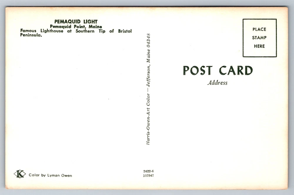 Maine Pemaquid Lighthouse Bristol Peninsula Postcard, C5 *Crease: That corner is weak and barely held together. Intended to be placeholder. *Important shipping information: For all postcards under $19.99 shipping will be free. In order to be able to offer this I cannot pack cards with extra cardboard or label as "Do not bend" because the shipping method would need to change entirely. If this is a must we can upgrade the shipping, but I unfortunately cannot offer this for free. Also the tracking with eBay standard envelope is basic and often only tracks outgoing and final destination. Tracking from location to location is not really available on these items. All orders are properly sleeved and in a cardstock envelope which should be acceptable under standard handling. On orders more than $19.99 shipping will be upgraded and paid by customer (USPS first class shipping) and includes insured tracking and improved packing/materials. This upgraded shipping will include a bubble mailer, standard postcard sleeve, and top loader case per order due to it being a premium item. If you have any questions please ask and I will do my best to help. Powered by SixBit's eCommerce Solution
