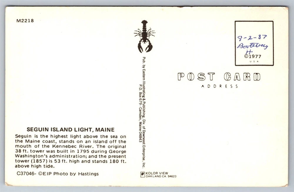 Maine Seguin Island Lighthouse ME Postcard, C5 *Crease: That corner is weak and barely held together. Intended to be placeholder. *Important shipping information: For all postcards under $19.99 shipping will be free. In order to be able to offer this I cannot pack cards with extra cardboard or label as "Do not bend" because the shipping method would need to change entirely. If this is a must we can upgrade the shipping, but I unfortunately cannot offer this for free. Also the tracking with eBay standard envelope is basic and often only tracks outgoing and final destination. Tracking from location to location is not really available on these items. All orders are properly sleeved and in a cardstock envelope which should be acceptable under standard handling. On orders more than $19.99 shipping will be upgraded and paid by customer (USPS first class shipping) and includes insured tracking and improved packing/materials. This upgraded shipping will include a bubble mailer, standard postcard sleeve, and top loader case per order due to it being a premium item. If you have any questions please ask and I will do my best to help. Powered by SixBit's eCommerce Solution