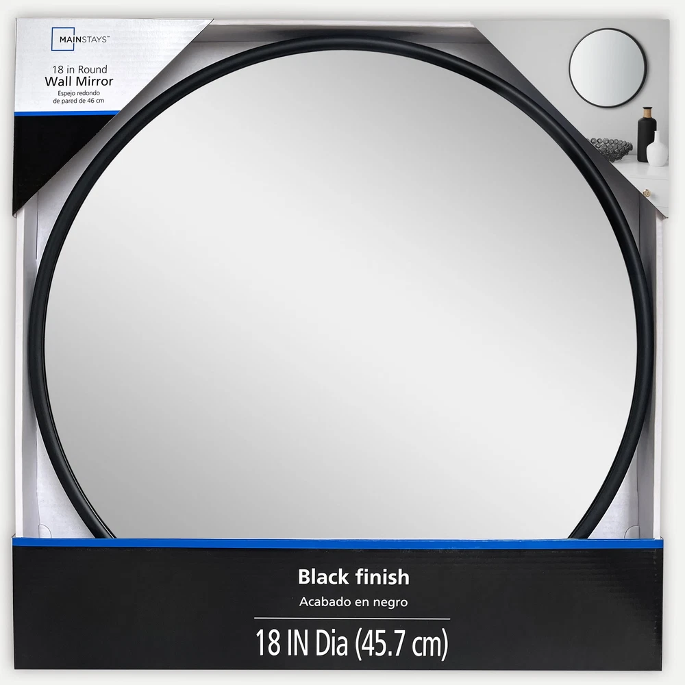 Instantly update the look of any space with this modern Mainstays 18" Traditional Round Plastic Bullnose Mirror in Black. It will compliment any décor with it's sleek frame and it takes up less room on your wall. Use in your entry way, living room, dining room or office to enhance your space. This mirror will visually help create a larger space with the reflective of clear images without distortion. Give the gift of space for birthday, anniversary, wedding, or holiday. On Sep 23, 2024 at 05:15:06 PDT, seller added the following information: On Nov 21, 2024 at 23:10:28 PST, seller added the following information:
