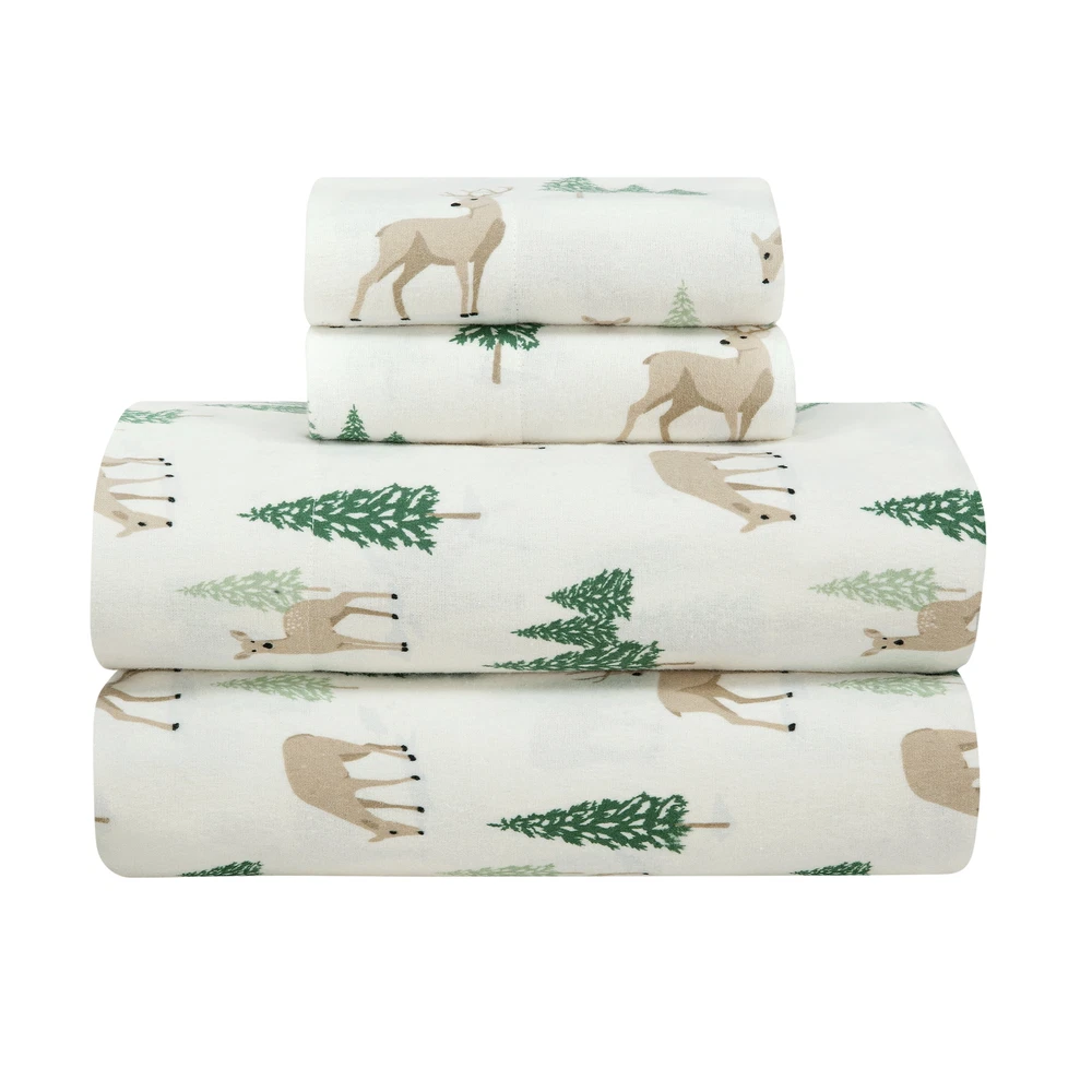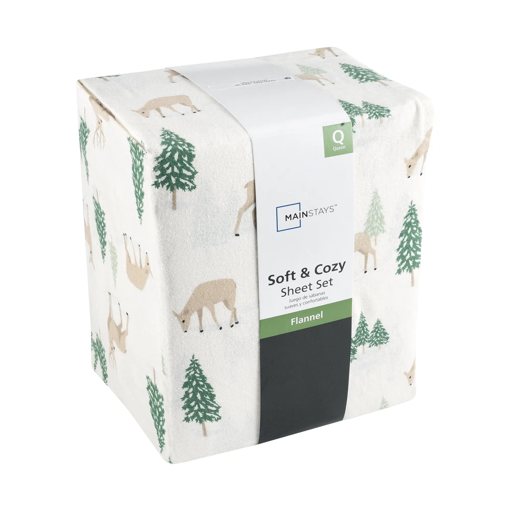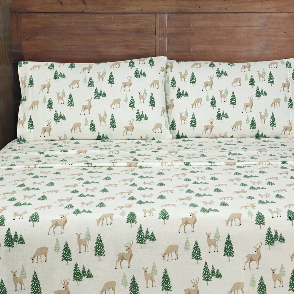 Mainstays 4-Piece Peace Full Deer Flannel Adult Sheet Set, King
