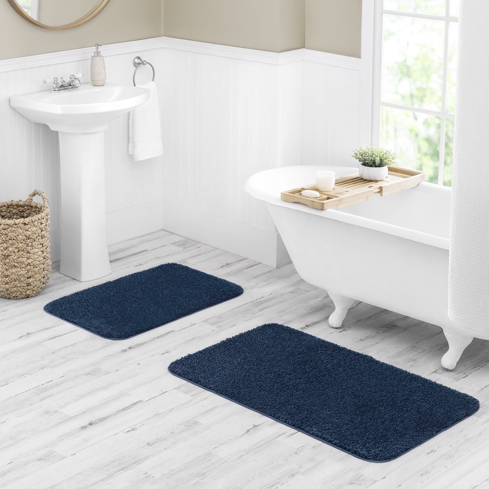 The Mainstays Basic Bath Rug is a functional addition to any bathroom, designed to provide both comfort and durability. Made from 100% polyester fibers, this rug features a soft, looped texture that feels luxurious underfoot, while also being tough enough to withstand the daily wear and tear of a bathroom setting. The rug measures 20" x 32", making it the perfect size for placement by the shower, tub, or sink and it is also backed with a skid-resistant material. It comes in a variety of solid colors, allowing you to choose one that fits your decor. A standout feature of this rug is the eco-friendly design, with 95% of the polyester being recycled. In addition to its comfort and practicality, it is machine washable and resistant to both stains and fading, ensuring it stays vibrant over time. Item: Mainstays Basic Rectangular Polyester Bath Rug Rug Size: 20" x 32" Material: 100% Polyester (95% is Recycled), 1400 GSM density Hand-feel: Ultra soft: Provides a plush, comfortable feel underfoot Durability: Stain and Fade resistant to help maintain vibrancy Safety: Skid resistant backing to help prevent slipping Buying Guide: OEKO-TEX Made in Green; High environmental standards Care: Machine wash warm, tumble dry low, do not dry clean Availability: Sold in a wide variety of colors and sizes