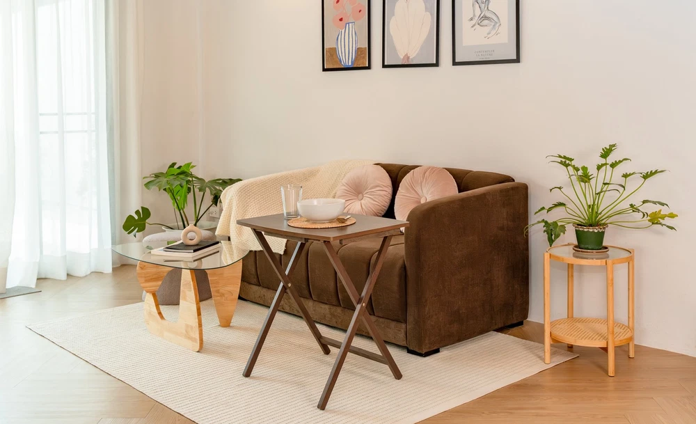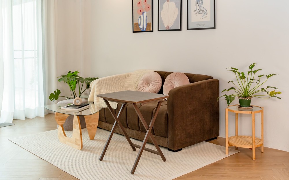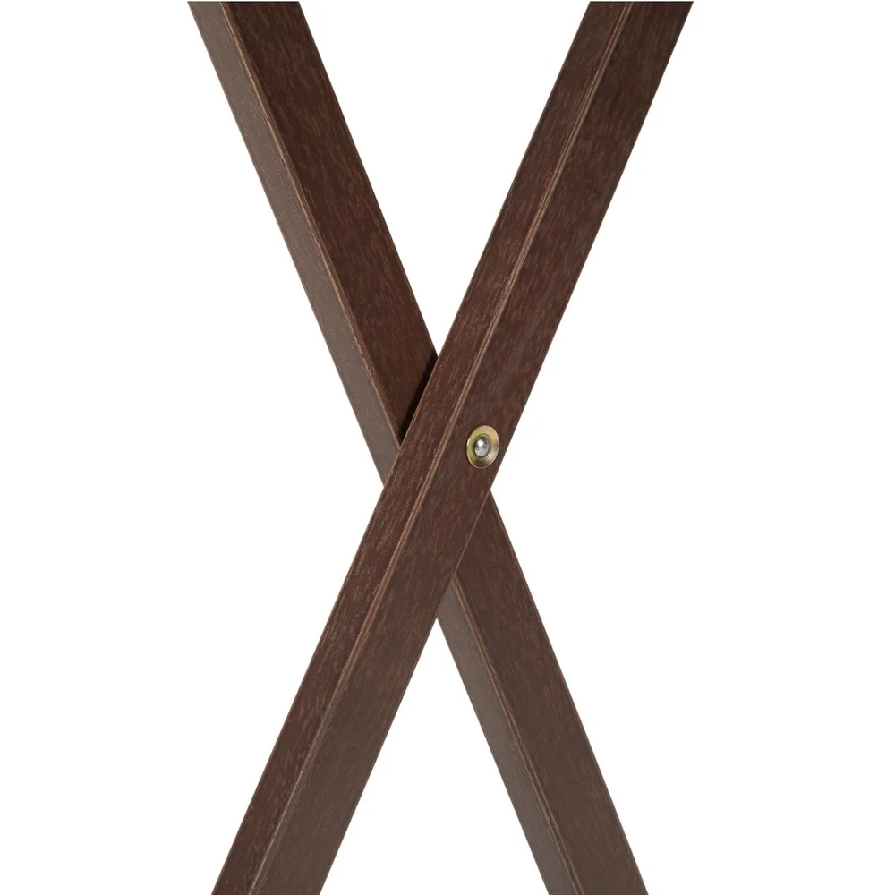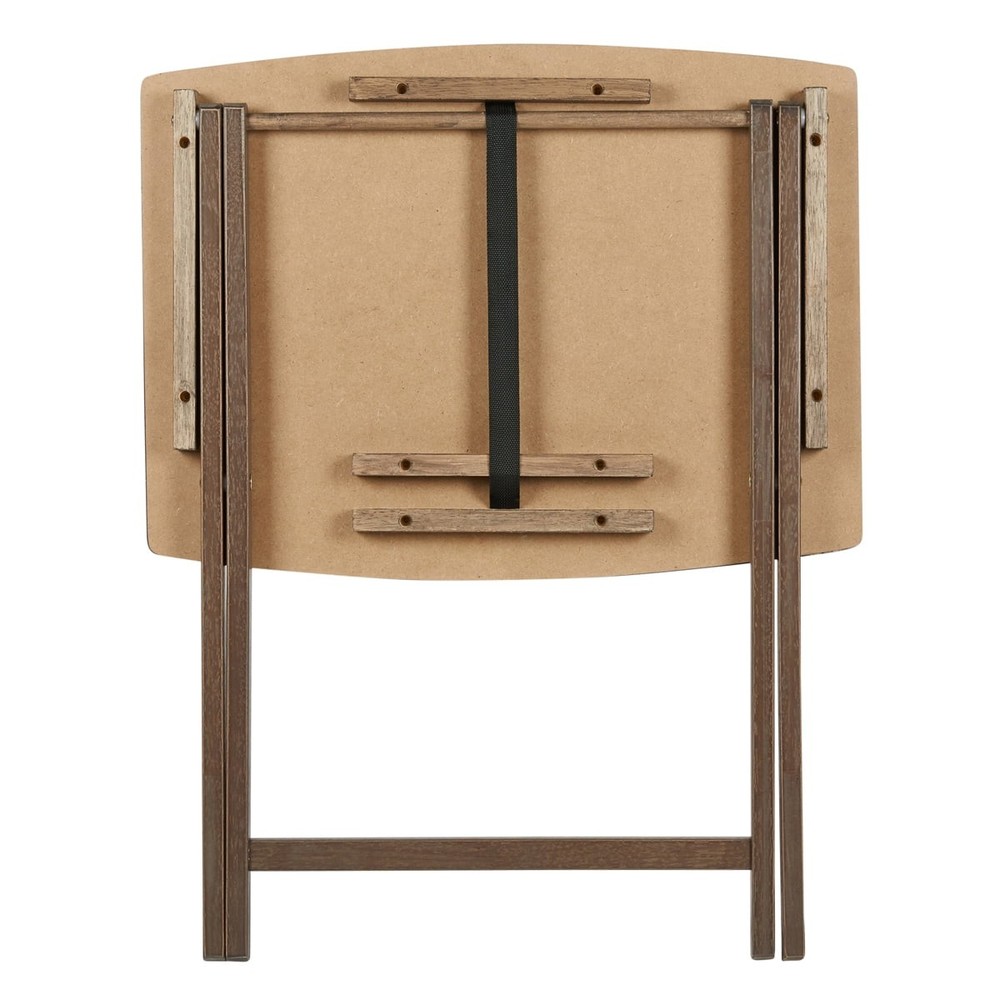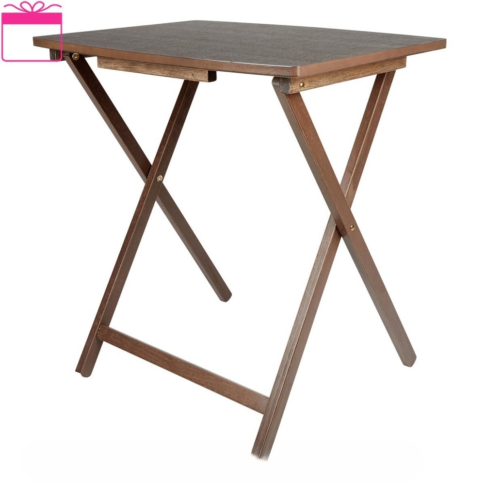 Mainstays Indoor Oversized Single Folding Tray Table, Espresso, 26" x 23.6 x 17.7" inches. Assembly height 26 inches thoughtfully designed to effortlessly fold away conveniently when not in used, saving spaces when needed. Its classic minimal curved rectangular table top shape along with open up X-frame bases make these table not only look good but also help with stability. Its wooden rustic gray finish looks also sure to compliment any decor scheme! It is ready to use, stylish, durable, light weight and easy to store tables on hand! It sits at a perfect height while you're seated, and rest on intersecting legs to create a strong base for anything you put on its surface. It is the perfect addition to dorm rooms, or smaller living spaces. Use it to instantly creates a desk, small kitchen table and work surface, meals by the television. Its sleek design can also fit in with many styles of décor, a perfect choice for every home. Constructed of MDF tabletop and solid rubberwood leg. Table measurement 26" H x L 23.6" x W 17.7" inches. Enhance your living space with the Mainstays Indoor Oversized Folding Tray Table in Espresso color. This versatile and stylish table effortlessly combines functionality with Espresso finish, making it an ideal addition to any home. Elevate your home with the Mainstays Indoor Oversized Folding Tray Table, a versatile and reliable piece that effortlessly combines style and utility. Order yours today and experience the convenience of functional furniture that complements your lifestyle. Mainstay indoor XL oversize tray table folded dimension: 29'' H x 1.7'' W x 19'' L inches. No assembly require for XL folding tray tables. The weight of table is 4.55 KG which make it easy portable from one place to another. Unfold Mainstay Table Dimension: 26" H x 23.6" W x 17.7" L Folded Mainstay Table dimension: 29'' H x 1.7'' W x 19'' L Espresso color finish (brown tone) Sturdy and Durable Build: Crafted with a blend of premium materials, including MDF and solid Rubberwood, this table ensures a sturdy and durable construction. The solid Rubberwood legs provide reliable support, making it an ideal choice for various activities. Generous Dimensions: With an ample tabletop measuring H26" x L23.6" x W17.7" inches, this oversized folding tray table offers plenty of space for a variety of uses. Whether you're enjoying a meal, working on your laptop, or displaying decor, this table accommodates your needs with style. Easy to Store: The folding feature adds a layer of convenience, allowing you to effortlessly fold and store the table when not in use. Perfect for those with limited space, the table provides practicality without compromising on aesthetics. Espresso Elegance: The rich Espresso finish adds a touch of sophistication to your decor. The deep, warm color complements a range of interior styles, making it a versatile and stylish choice for any room. Lightweight and Portable: Weighing only 4.55 KG, this table is easy to move around as needed. Whether you're rearranging your living space or hosting guests, the lightweight design ensures you can effortlessly transport the table wherever it's needed. MDF Table Top for Easy Maintenance: The MDF tabletop offers a smooth and easy-to-clean surface. Whether it's for daily meals or creative projects, the tabletop provides a practical and low-maintenance solution. No Assembly required.