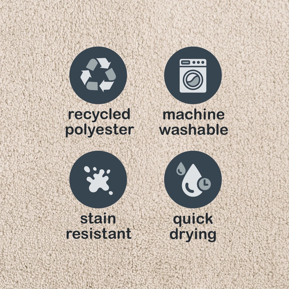 Functionality and durability are combined in this solid Mainstays Basic Toilet Lid Cover. It is a universal toilet lid cover that fits both standard and elongated lids and is crafted in plush looped 100% polyester fibers (95% Recycled Polyester). Experience fade resistant color that is paired sensibly with stain resistant fibers for a longer lasting, quality product. This machine washable lid cover provides a 1,400 GSM weight that is functional and durable. Ultra soft: Provides a plush, comfortable feel underfoot. Stain resistant: Helps maintain a clean look even with spills or dirt. Skid resistant backing: Keeps the rug in place to prevent slips and accidents. Bath rug care: Machine wash separately in warm water, Gentle cycle. If bleach desired, wash using 1.5 oz of chlorine bleach with 1.5 oz of bleach free detergent. Tumble Dry Low. Do Not Dry Clean. Available in various colors to mix and match with bathroom decor