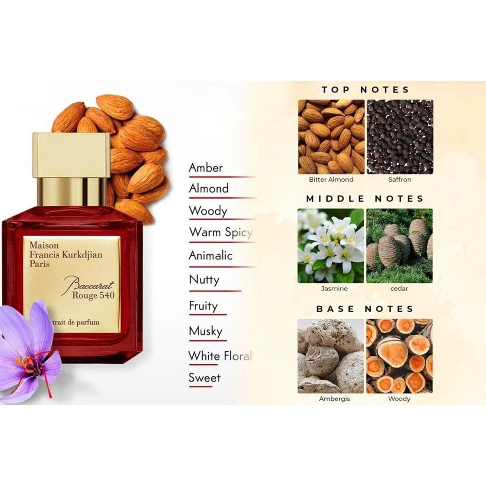 Description: Discover the ultimate luxury with the Maison Francis Kurkdjian Baccarat Rouge 540 Eau de Parfum (EDP) 2ml spray sample. This is the perfect opportunity to experience the unique and seductive fragrance that has made the name of this luxury perfume brand. Scent: Baccarat Rouge 540 is a unisex oriental floral fragrance, famous for its sophisticated and enchanting combination of notes: Top notes: Saffron, Jasmine. Middle notes: Amberwood, Ambergris. Base notes: Fir resin, Cedarwood. This blend creates a scent that is both warm, sweet, luxurious and mysterious, unforgettable. Special features: 100% genuine: Commitment to genuine products, ensuring quality and experiencing the right fragrance. Convenient spray: The compact 2ml spray bottle is ideal for carrying around and testing the scent before deciding to buy a larger bottle. Excellent performance: Impressive scent retention and projection, helping you feel confident all day long. Unique and luxurious: Baccarat Rouge 540 is a symbol of luxury and class, loved by perfume connoisseurs around the world. Ideal for: Those who want to experience a high-end fragrance before buying a larger bottle. Those who love niche perfumes and want to explore unique scents. Those looking for a luxurious and meaningful gift. Product information: Brand: Maison Francis Kurkdjian Product name: Baccarat Rouge 540 Eau de Parfum Form: Vial Spray (test spray bottle) Capacity: 2ml/0.06oz Unisex. Hurry up and own a sample of Maison Francis Kurkdjian Baccarat Rouge 540 EDP perfume and immerse yourself in the charming and enchanting fragrance!