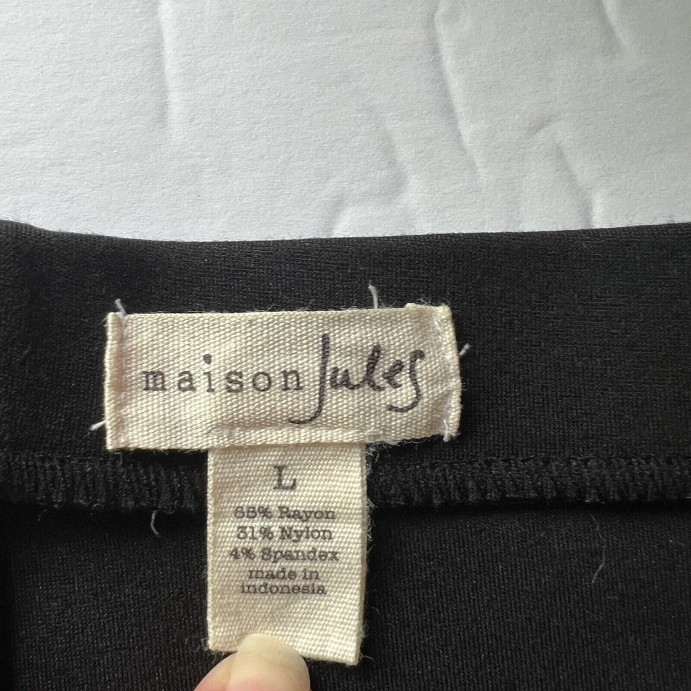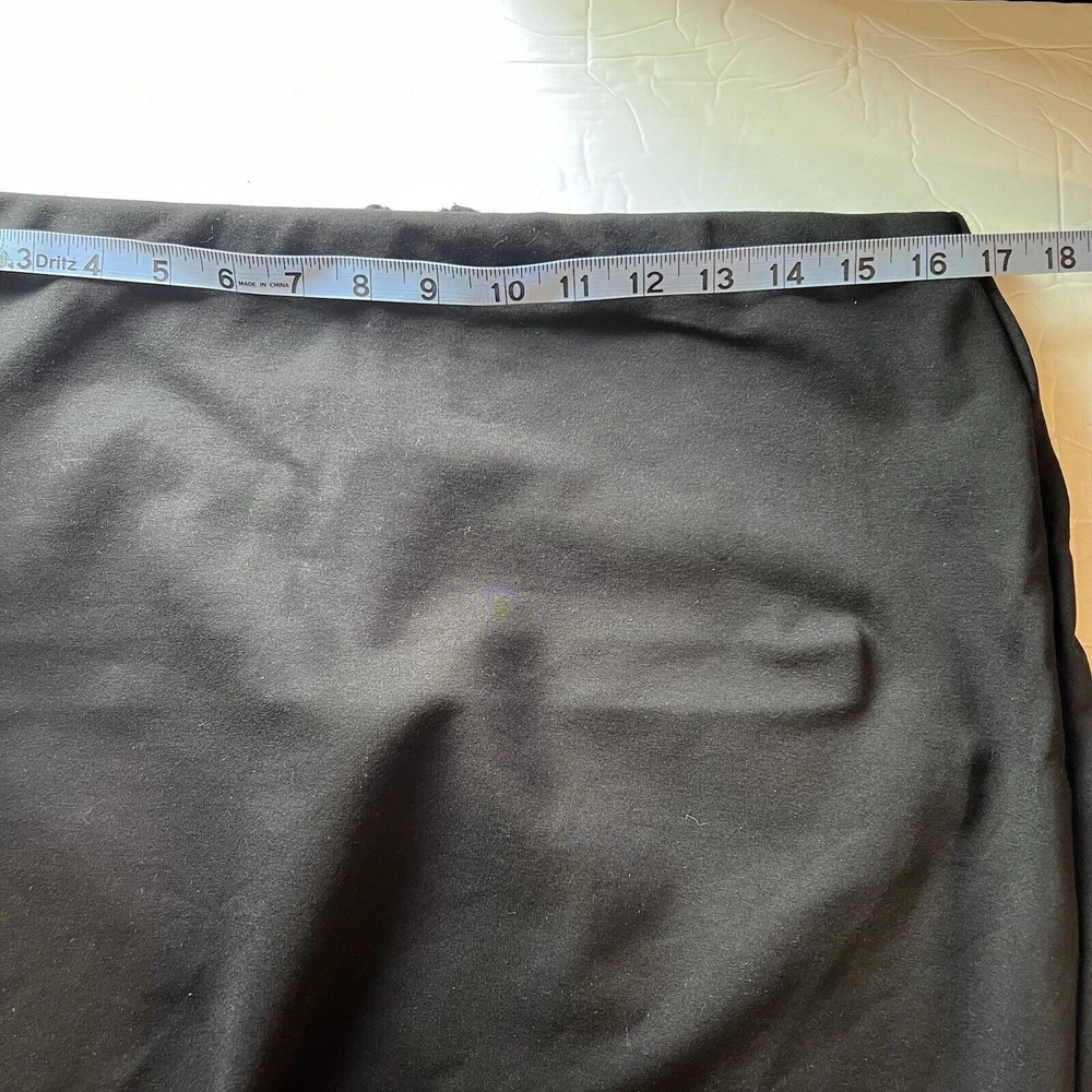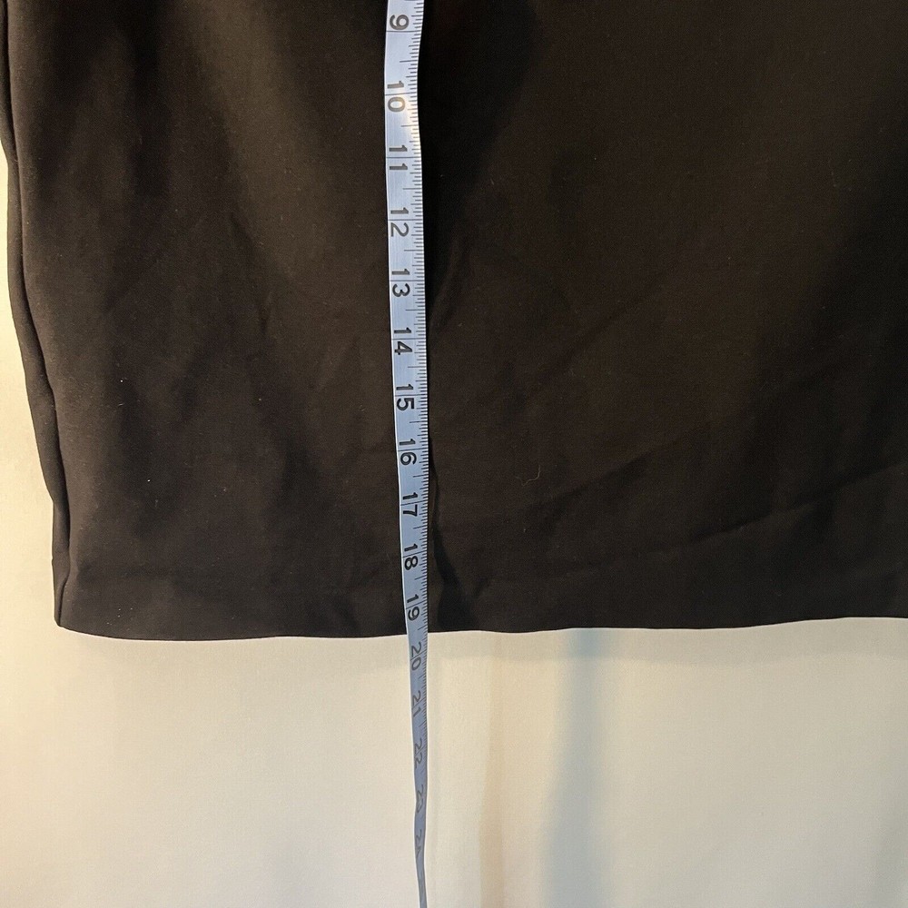 Elevate your wardrobe with this Maison Jules black pencil skirt. The skirt is made from a high-quality blend of polyester, spandex, and rayon, ensuring it is comfortable and perfect for any occasion. The skirt features a solid pattern and a straight, pencil style that is both classic and dressy. The skirt has a zipper closure on the back and is perfect for travel, party/cocktail, casual, workwear, or business occasions. The skirt is size large and has accents of zipper and stretch features. It is suitable for all seasons including winter, summer, fall, and spring. Add this timeless piece to your wardrobe today! Ships out same or next day!