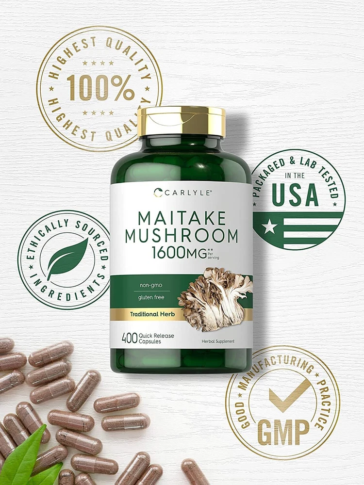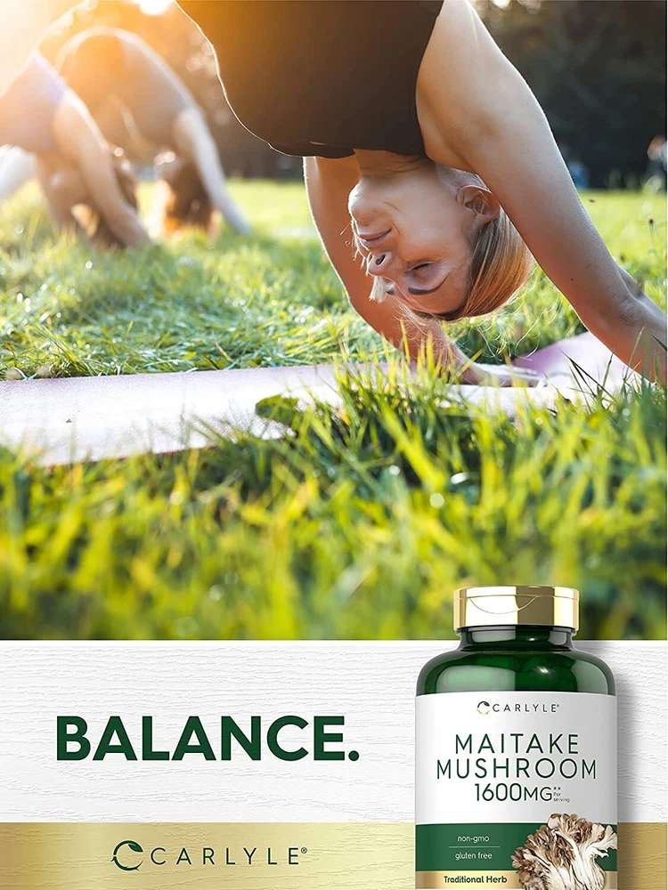 What is Maitake Mushroom? Maitake Mushrooms are traditional Japanese Mushrooms commonly known as dancing mushrooms. These exotic fungi grow wild throughout Asia and North America on the base of Oak, Elm, and Maple trees. Maitake Mushrooms are a notorious source of Beta-Glucans, a special type of beneficial fiber that grows on very few species of herbs. Carlyle Maitake Mushroom: Carlyle Maitake Mushroom supplement is a premium form of this traditional herb. This gluten-free and non-GMO formula provides the equivalent of 1,600 mg of Maitake Mushroom per serving in a potent extract in super convenient quick-release capsules. Our herbal supplements are lab tested to match our superior standards of purity and potency, because you deserve the best support for your wellness routine. Carlyle Maitake —Rooted in Wellness: Our expertise in sourcing the purest ingredients combined with advanced technologies makes us proud to deliver premium, honest supplements at the best value. Carlyle Maitake Mushroom is a testament to our commitment to excellence, made with powerful ingredients rooted in wellness. Thanks for choosing us in your pursuit of living healthy.