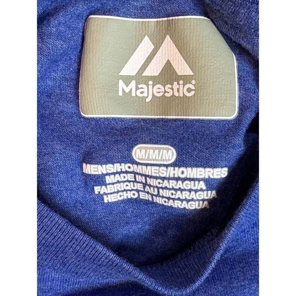 A blue Majestic Texas Rangers graphic t-shirt for men. This short-sleeve tee showcases a circular design with the team name and initial logo. Perfect for game day or casual wear. Department: Men Theme: University, Retro, Patriotic Fit: Regular Sleeve Length: Short Sleeve Type: T-Shirt Pattern: Graphic Print Features: Stretch Neckline: Crew Neck Fabric Type: Jersey Material: Cotton Blend Keywords: Majestic Athletic, MLB, Baseball, Sports Fan, Team Apparel, Graphic Tee, Short Sleeve, Casual, Comfortable, Everyday, Summer, Outdoor Activity