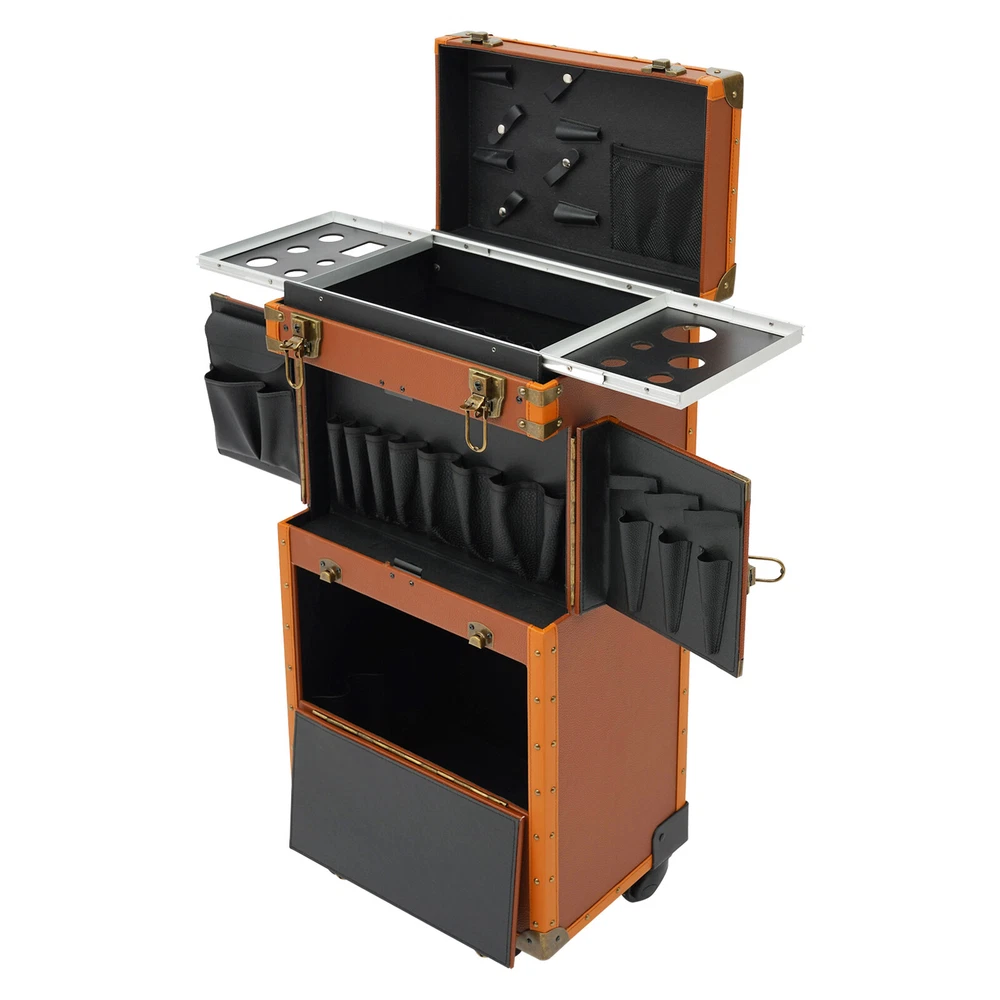 Make-up Case Hairdressing Case Cosmetics Organiser Trolley Case Makeup Box Description Are you still worried about the clutter of hair-styling tools scattered everywhere? Our hairdressing case can solve your troubles. High-quality materials make it sturdy and durable. The top scissor clip and mesh bag, the middle movable partition, the mesh bags on the side door, the layer board, and the bottom drawer allow you to classify and place your hair styling tools. The strong load-bearing capacity can meet your storage needs. In short, it is the ideal assistant for storing various hair or makeup tools! Key Features Premium Materials: This product is made of high-quality PVC , wooden boards, and hardware, which is corrosion-resistant , wear-resistant , and durable, ensuring your long-term use. Classified Storage: The top scissor clip and mesh bag can store scissors and combs(not included). The movable partition in the middle can be used to store hair dryers or curlers(not included). The mesh bags on the side door can be used to store clips and scissors(not included). The layer board can be used to place makeup bottles(not included). The bottom drawer can be used to store large volume makeup or hair styling tools(not included), keeping your items sorted and organized. Strong Load-bearing Capacity: High-quality materials enable this product to support a weight of about 33.07-44.09 lbs , allowing you to use it with confidence. Protect Your Privacy: Equipped with 2 mobile password locks and 2 keys, it can protect valuable items inside your box and maximize your privacy. Generous Appearance: The coffee color tone, rectangular shape, and smooth lines give this product a generous appearance, which is a great decoration for your hair salon. Easy to Use: The retractable rod length allows you to freely adjust the length of the rod, making it convenient for your use. Excellent Gift: Its exquisite design and large capacity make this product a great gift to your mother, girlfriend, sisters, wife, and loved ones so that they can enjoy more convenient makeup time. Simple Cleaning: The simple structure and smooth surface allow you to clean this product with a towel, which is simple. Details Durable Handle: The ergonomically designed handle can relieve finger pressure and provide you with a comfortable user experience. Buckle Design: It makes the door panel more sturdy and flexible. Universal Wheels: The bottom universal wheels with fixed device allow you to easily move and fix this product. Application It is suitable for manicurists, hairstylists, beauticians, makeup artists, and hair salons to store various tools. Specification Color: Coffee Color Shape: Rectangular Style: Modern Material: PVC, Wooden Boards, Hardware Assembly Required: No Product Size: 38*25*82cm/14.96*9.84*32.28in Load-bearing Capacity: About 15-20kg/33.07-44.09lbs Gross Weight: 11kg/24.25lbs Net Weight: 10kg/22.05lbs Package Size: 90*45*33cm/35.43*17.72*13in Package Included 1* Hairdressing Case 2* Mobile Password Locks 2* English Manuals 2* Keys Notes Please note that items other than this product are not included. The service wear of the case is a normal phenomenon. In the process of daily use, please try to avoid excessive impact and drop to extend the lifespan of the product. Please use soft tools and water to clean. Please keep away from corrosive liquids. Please avoid long-term exposure to the sun. Please check the size carefully before ordering. Please read the English manual carefully before use. Please use this product within its carrying capacity. Please allow the slight color difference caused by the shooting light and the 1-3 cm error due to manual measurement, and make sure you do not mind before ordering. Payment Delivery details Terms of sales About us Contact us Payment We accept ebay payment 。 Fees such as import duties, taxes are not included in the item price or shipping costs. These charges are the buyer's responsibility. Delivery details Shipping: 2-9 working days to: USA Terms of sales We maintain high standards of excellence and strive for hundred percent customer satisfaction. Feedback is very important to us. We hope that you contact us immediately before you give neutral or negative feedback, so that we can address your concerns. It is impossible to address issues if we do not know about them! About us Your satis faction is our ultimate goal. We work hard to earn your trust and future business. Our certified technicians have tested each item before shipping. The unit comes with 1 year limited warranty on all manufacturing defects. a) If you receive a defective item, you may return it or ask for a discount. Please contact us within 14 days after you receive the package. b) What you returned must be intact and in its original packaging as re? u. Customer is responsible for shipping costs of the returned item. c) We will cover the cost of shipping back t with the shipping rate indicated in the registration page. We will send you a new unit or refund the full payment you paid. Thank you. Contact us Business Hour Business Hour: Monday To Friday: 8:30 AM to 5:00 PM (Beijing China time) Due to time zones, our reply to your questions may not be immediately. But within above working time, we will reply your email within 24 hours. If it's non-workdays, please kindly be patient and wait till Monday. Please contact us with ebay message. Please feel free to contact us if you have any questions. Monday To Friday: 8:30 AM to 5:00 PM (Beijing China time) Due to time zones, our reply to your questions may not be immediately. But within above working time, we will reply your email within 24 hours. If it's non-workdays, please kindly be patient and wait till Monday. Please contact us with ebay message. Please feel free to contact us if you have any questions.