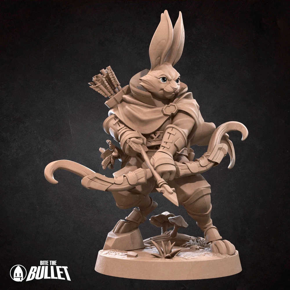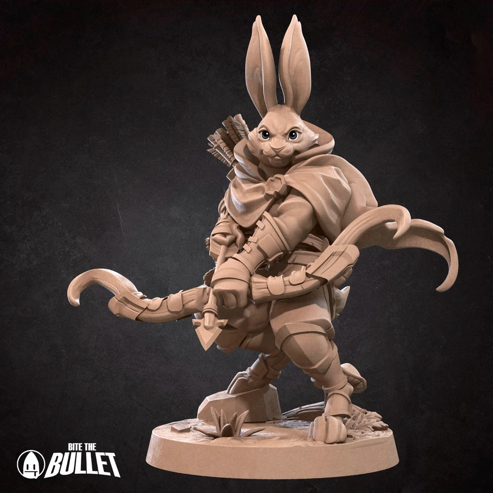 Harengon Ranger by Bite The Bullet 3d printed Tabletop Role Playing Game Miniature Welcome to Wizards Supply where we offer 3D prints of fantastic models! Designed by Bite The Bullet. Print Includes Includes: 1x Miniature 1x Base Product Features: Impeccable Precision: We take pride in delivering the finest 4K, 3D printed miniatures, crafted with precision and care.This meticulous approach ensures that every print boasts crisp details and exceptional quality. Pre-Supported Excellence: To streamline your experience, all our models are printed pre-supported. We go the extra mile to remove supports, leaving minimal traces behind. You'll receive your miniature with the utmost attention to detail, making it ready for your personal touch. Customization Options: While our miniatures arrive unassembled and unpainted, we offer a convenient solution for those seeking a primed finish. For an additional fee, we're delighted to prime your chosen model. This service allows you to focus on the creative aspect of your collection, knowing that your piece is prepared to perfection. We are thankful to be able to sell these models because of our commercial partnership with Bite The Bullet. To check out their paint guides please visit them at https://www.myminifactory.com/users/BiteTheBullet Wizards Supply Promise: Collector's Delight: As passionate collectors ourselves, we understand the importance of owning miniatures that stand out. Our creations are born from a genuine love for the craft, ensuring that you receive products that exceed your expectations. Explore our collection today and discover the perfect additions to your tabletop adventures or showcase displays. Your Satisfaction Guaranteed: Your happiness is our top priority. We stand behind the quality of our products, and if for any reason you are not fully satisfied with your purchase, please don't hesitate to reach out to us. We're dedicated to resolving any concerns and ensuring that your buying experience is not just pleasant but extraordinary. Thank you for choosing us for your 3D printed miniature needs. If you have any further questions or need assistance, you can message us here. Stay tuned for exciting new licenses and updates to our catalog!