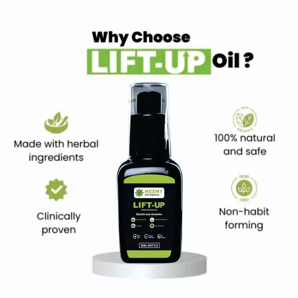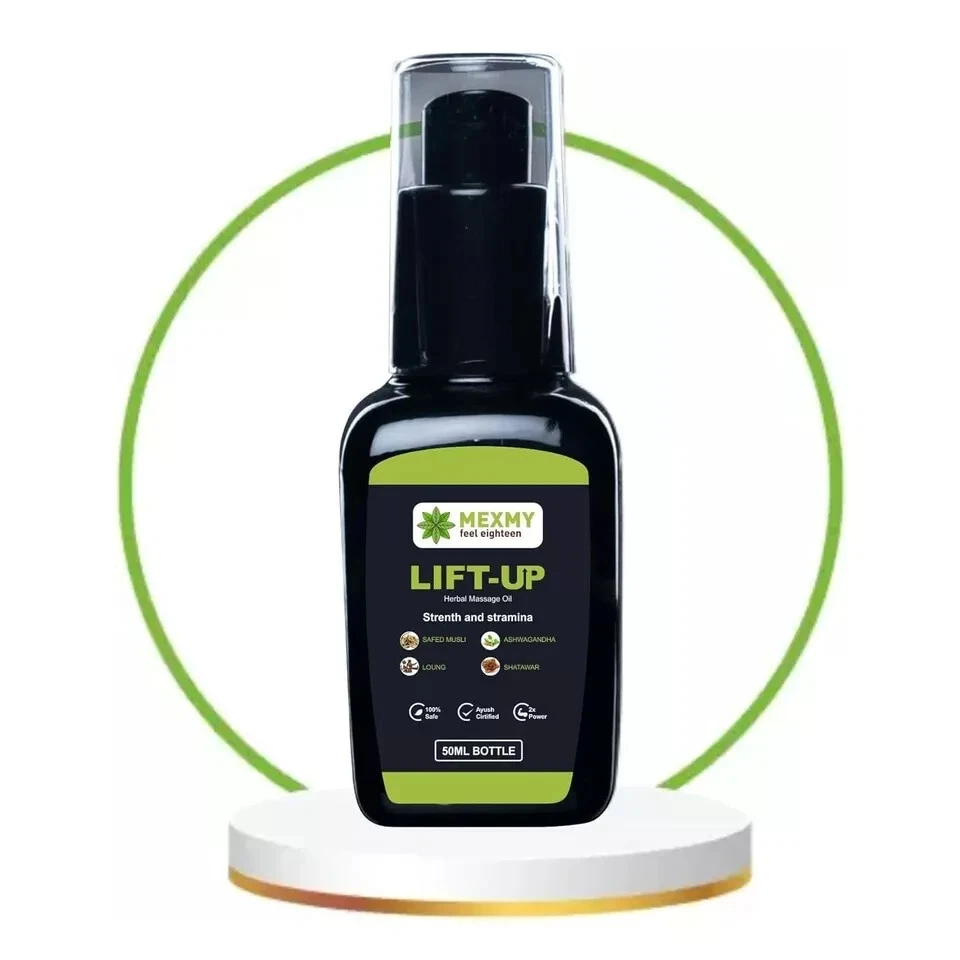 MEXMY Feel Eighteen Lift-Up Massage Oil for Men Elevate Your Wellness Routine Discover the rejuvenating power of MEXMY Feel Eighteen Lift-Up Massage Oil, expertly crafted for men who seek to enhance their vitality. This 100% pure and natural Ayurvedic formula is designed to invigorate both body and mind, making it the perfect addition to your self-care regimen. Key Features: 100% Pure & Natural: Made from high-quality ingredients, this massage oil is free from synthetic additives and chemicals, ensuring a safe and wholesome experience. Ayurvedic Formulation: Infused with traditional Ayurvedic herbs, this oil promotes relaxation, improves circulation, and helps restore balance to your body. Revitalizing Benefits: Experience a soothing massage that not only relieves tension but also uplifts your mood and revitalizes your spirit. Versatile Use: Ideal for daily massages, post-workout recovery, or simply as a luxurious treat after a long day. Lightweight & Non-Greasy: The easily absorbed formula allows for smooth application without leaving a heavy residue, so you can enjoy its benefits anytime. How to Use: Apply a small amount of oil onto your palms and massage gently into the skin using circular motions. Focus on areas of tension for maximum relief. For best results, use regularly as part of your wellness routine. Ingredients: A blend of natural oils and Ayurvedic herbs, carefully selected to promote relaxation and rejuvenation. Size: 50 ml