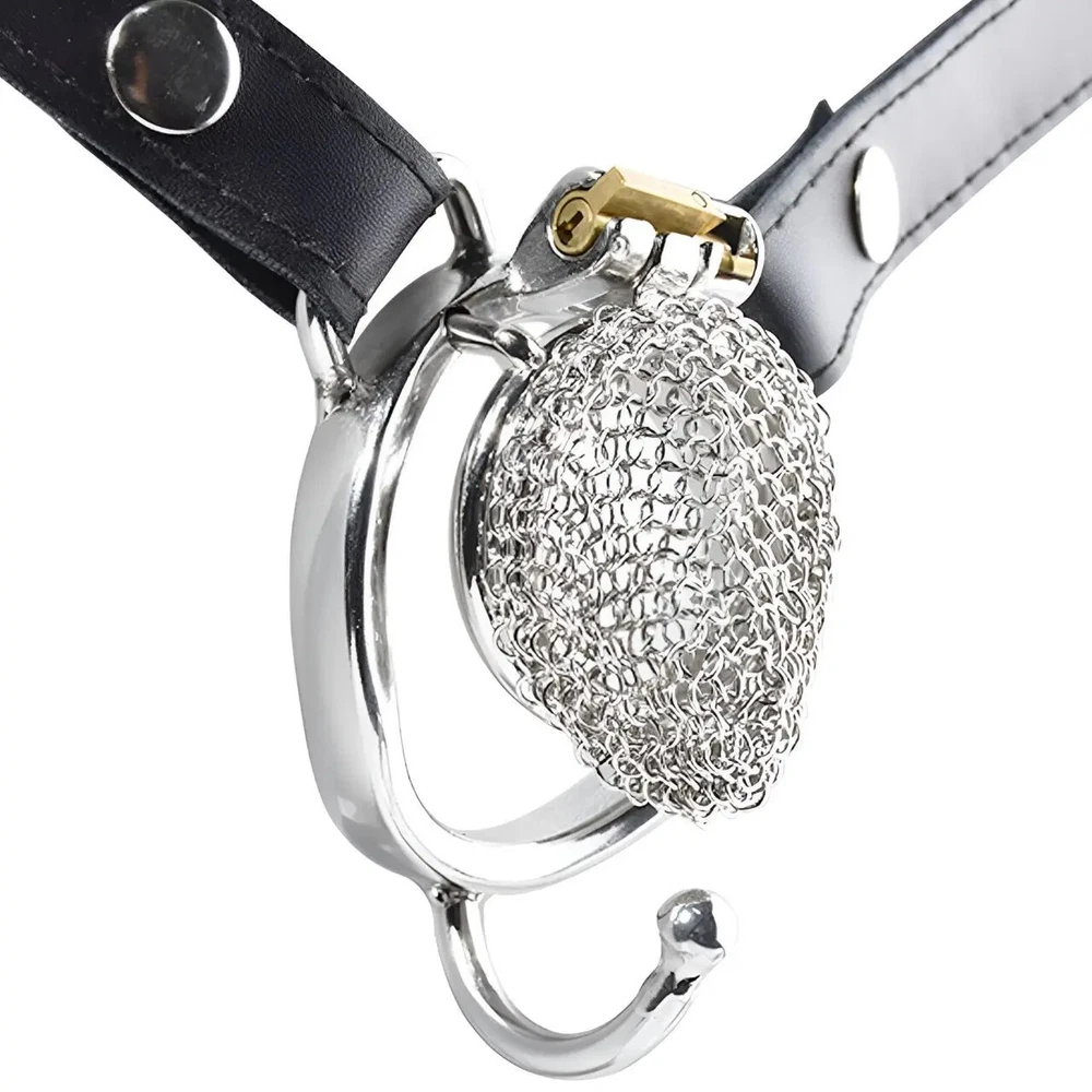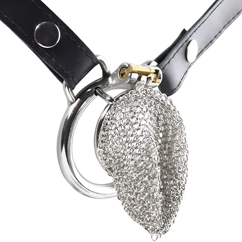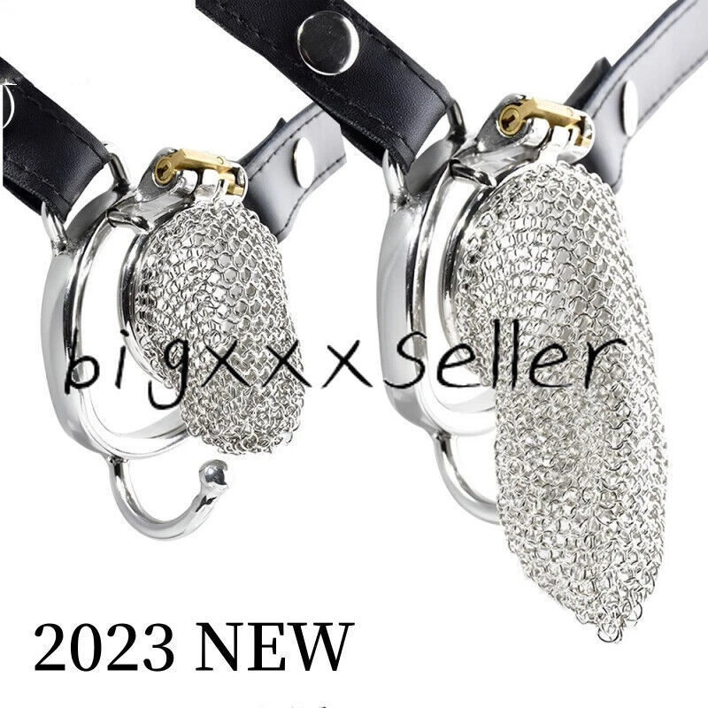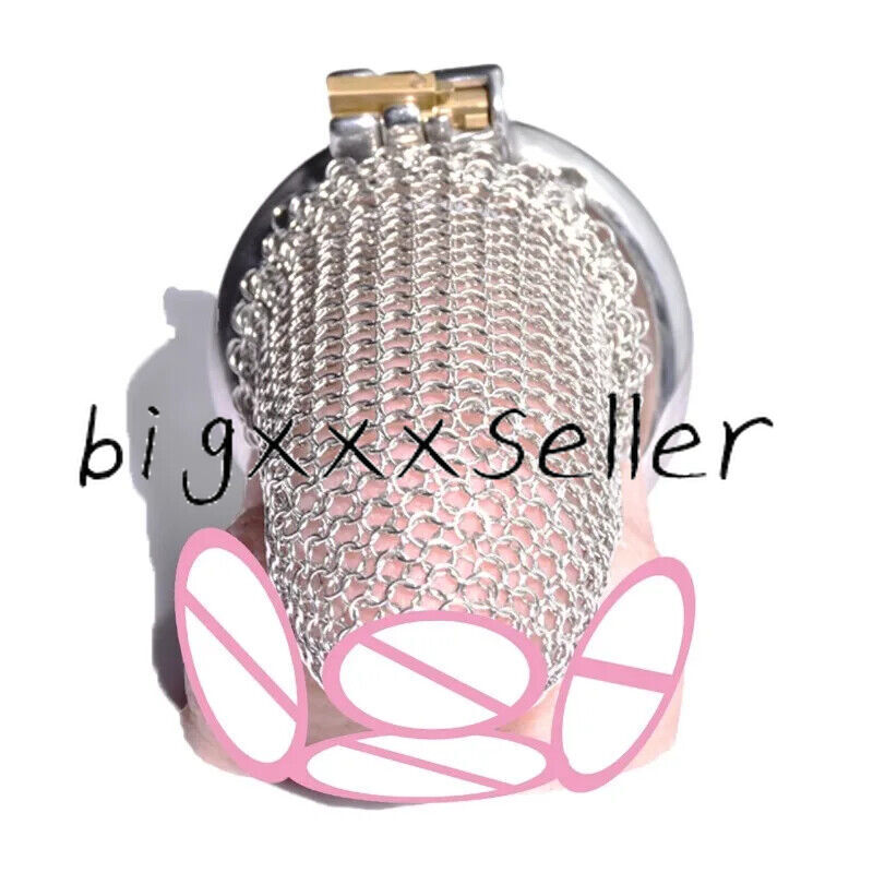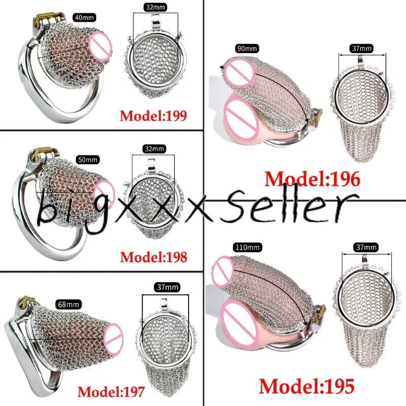 Male Stainless Steel Hauberk Chastity Cage Locks 5 Sizes Rings Belt Device