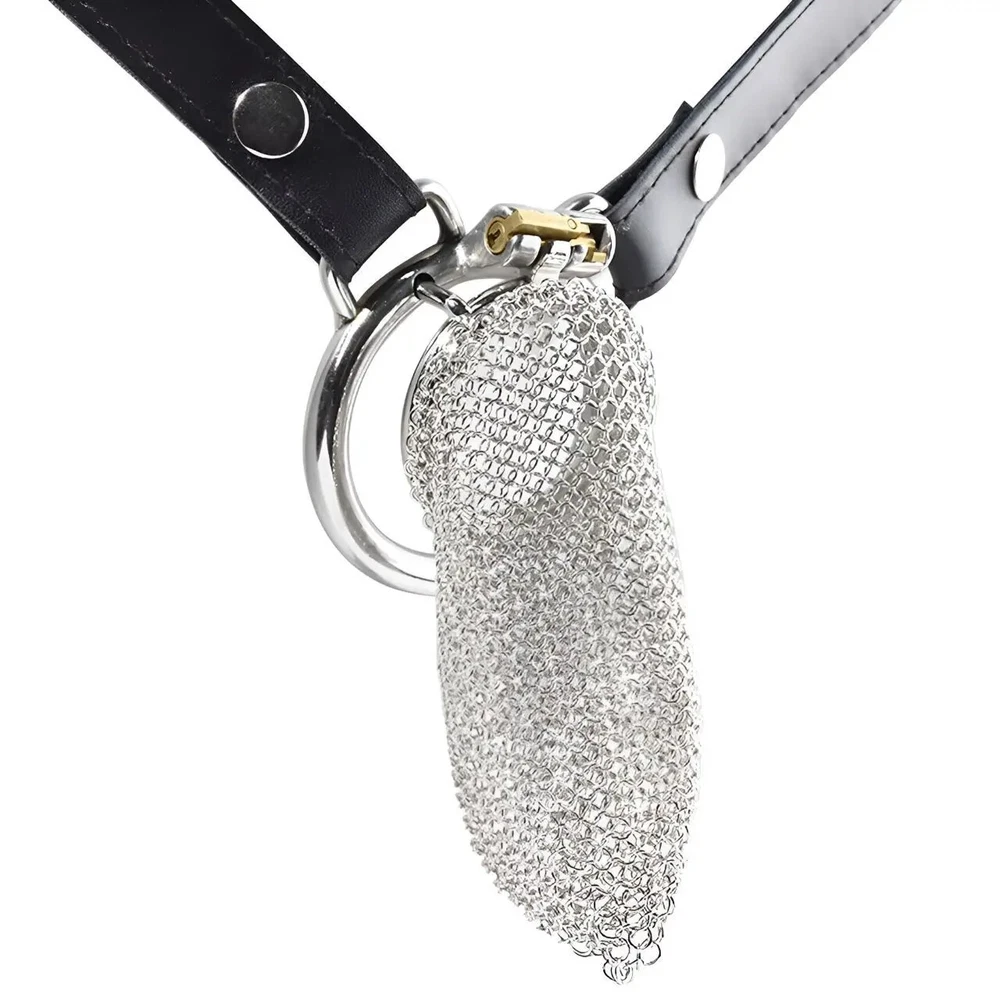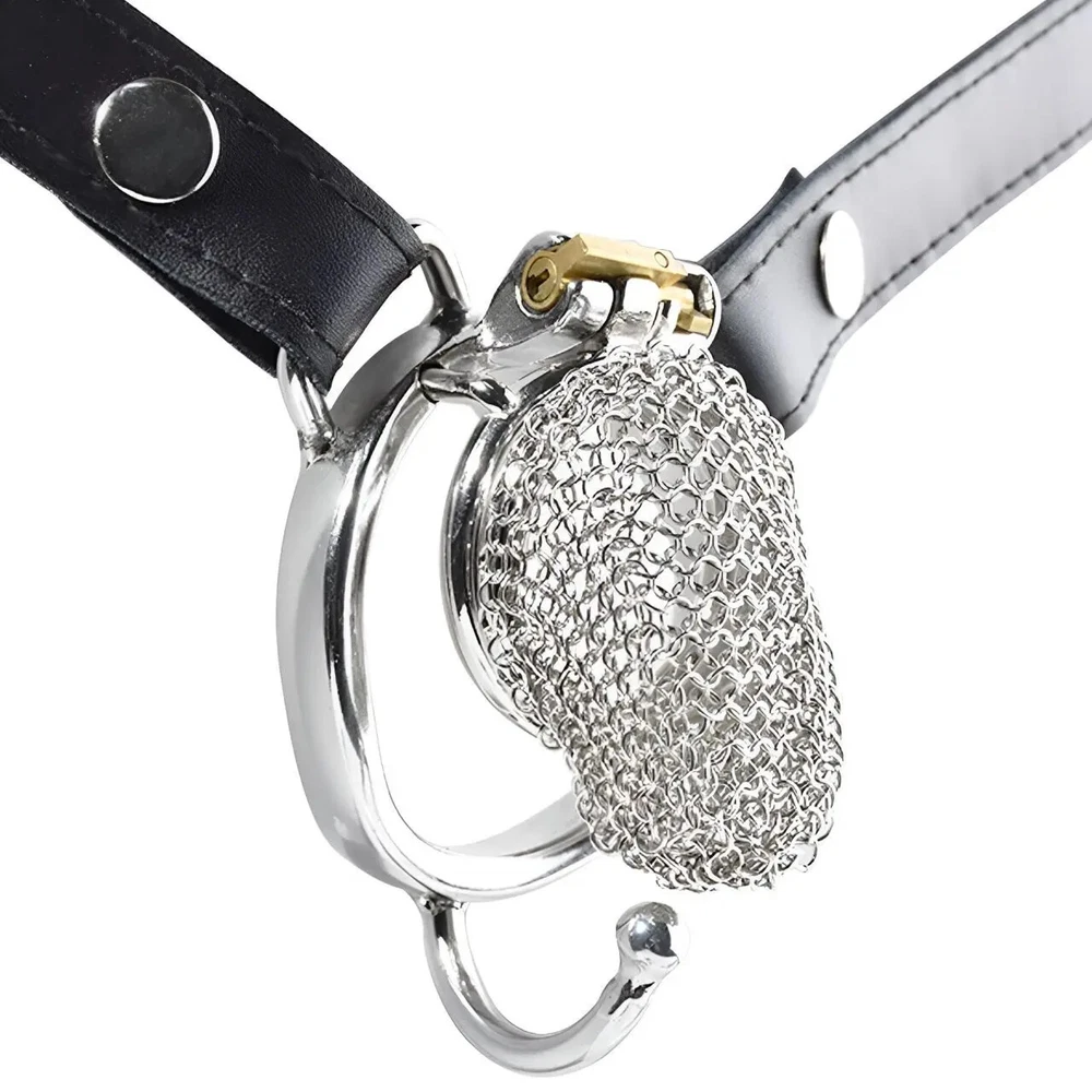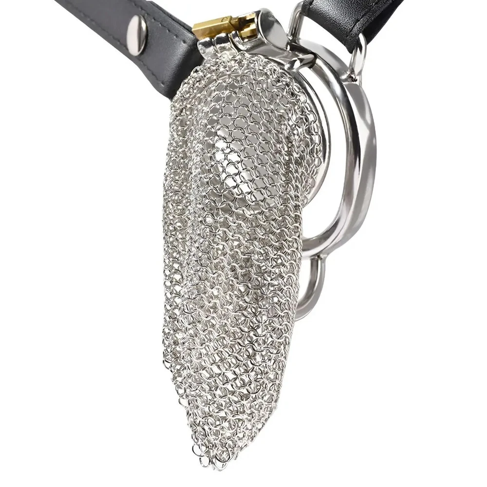 Male Stainless Steel Hauberk Chastity Cage Locks 5 Sizes Rings Belt Device