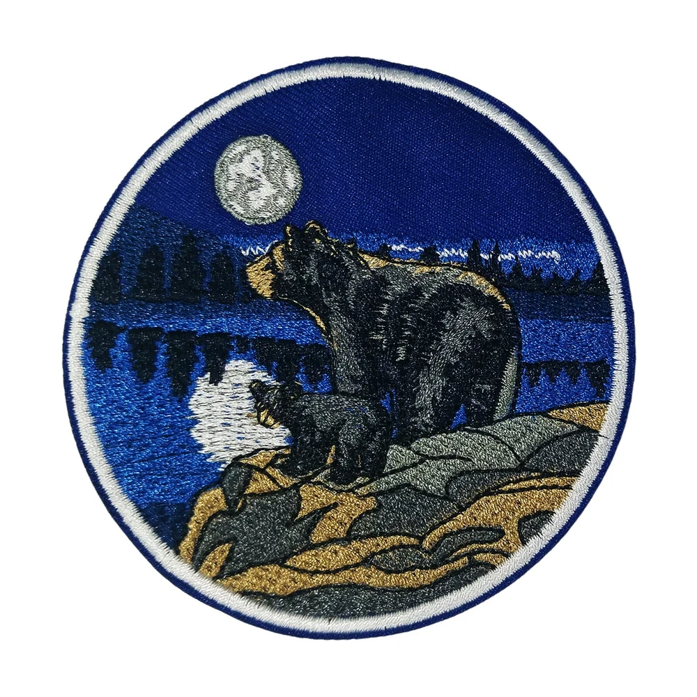 Mama Bear & Cub Patch Embroidered Iron-On Applique Travel Souvenir Moon Stars