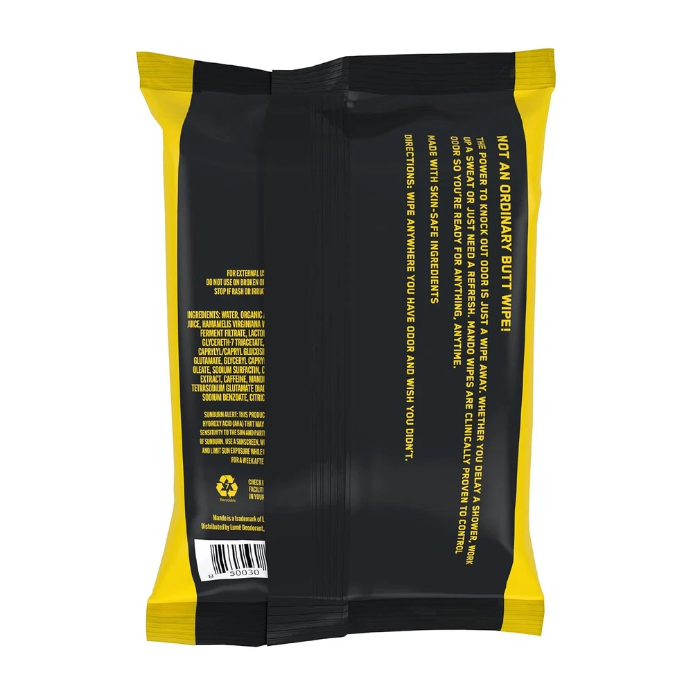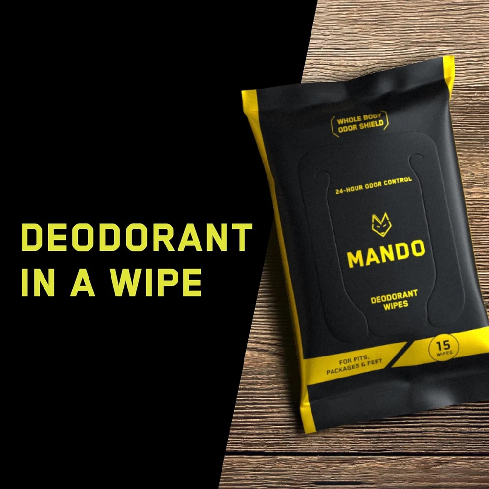 Mando Deodorant Wipes - 24 Hour Odor Control - Aluminum Free, Baking Soda Free,