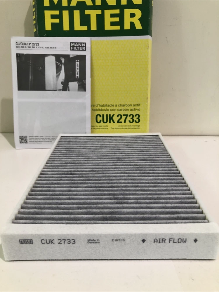 24Keep the air inside your vehicle clean and fresh with the MANN-FILTER Cabin Air Filter CUK 2733. Specifically designed for a variety of models including the LR Range Rover Evoque and Volvo S80, this filter is engineered to trap pollutants and allergens, ensuring a healthier driving experience. With its easy installation clamp-on mounting style and high-quality rubber gasket, maintenance is a breeze. Manufactured in Germany, the MANN-FILTER CUK 2733 is a reliable choice for automotive care. It is not a universal fitment, ensuring compatibility and proper function for designated vehicles. The filter boasts OE/OEM part numbers 30733893, 30767024, and LR019589 for a seamless replacement. Trust in the reputation of MANN-FILTER to enhance your vehicle's air quality. Fits below vehicles: Land Rover 08-11 - LR2 Base, HSE, HSE Lux, SE Charcoal Impregnated 13-13 - Range Rover Evoque Dynamic, Prestige, Pure Charcoal Impregnated Volvo 11-13 - S60 T5, T6, T6 R-Design Charcoal Impregnated 13-13 - S60 AWD T5 Charcoal Impregnated 13-13 - S60 FWD T5 Charcoal Impregnated 07-13 - S80 3.2, T6, V8 Charcoal Impregnated 09-10 - V70 3.2 Charcoal Impregnated 10-13 - XC60 T6, T6 R-Design Charcoal Impregnated 10-13 - XC60 AWD 3.2, 3.2 R-Design Charcoal Impregnated 10-13 - XC60 FWD 3.2, 3.2 R-Design Charcoal Impregnated 08-13 - XC70 3.2, T6 Charcoal Impregnated 13-13 - XC70 AWD 3.2 Charcoal Impregnated 13-13 - XC70 FWD 3.2 Charcoal Impregnated
