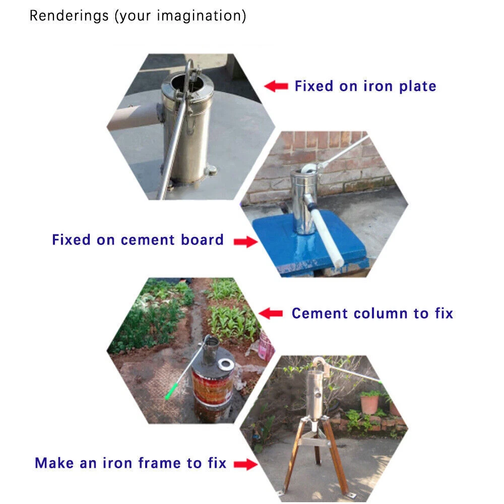 Specifications Pump Body: 255mm Base Diameter: 89mm Handle Length: 456mm Material: Stainless Steel Interface: 32mm outer diameter water pipe Suction range: 8m Features: Increase Weight: 1.435kg Material: pump body, lifting core, screws: 202 non-magnetic stainless steel cup, water-proof sheet: high-quality rubber Dimensions: Pump height: 25 cm, bottom diameter: 8. 8 cm, Handle length: 45.6 cm, handle diameter: 1. 2 cm Hanging water component: 18.5 cm, pump body thickness: 0. 8 mm Outlet length: 5.7 cm Package Included: Pump Body x1 Hanging Core x1 Screw (202 non-magnetic stainless steel) x3 Rubber Pump Cup x10 Rubber Water-proof Tablets x10 Hose Connector x1 PVC Connector x1 Raw Material Belt x1 Hand Pump Suction Pump Stainless Steel Home Shallow Well Manual Water Jet Pump Product Description This pump is an improved version of stainless steel. Good airtightness prevents the water from deteriorating when drawing water. Although the new pump is small, because of its excellent design, the water output can far exceed the old cast iron pump. Its pumping height is up to 10 meters. If you have pumping needs, you shall not miss this product. Key Features Latest Technology The pump cover of the old pump is an external type, which is not tight enough after being covered, and it is easy to leak. The pump cover of the new pump is internal, beautiful in appearance, reasonable in design, and tighter after being covered. Exquisite Workmanship This pump has been reinforced with welding. For example, the connection of the pump, the handle, and even the edge of the pump foot has been welded many times. Superior Performance The whole body of this pump is made of stainless steel and will not rust after many years of use. With good pumping capacity, it can pump water from wells up to ten meters high. You do not need to worry about its capabilities. Value for Money To make this pump more value for money, we will give you 10 extra pump cups and 10 water-proof tablets. Do not worry about wear and tear, and then discard this product. You just need to replace the parts to make it a new one. It is not a disposable consumable! Specifications Pump Body: 255mm Base Diameter: 89mm Handle Length: 456mm Material: Stainless Steel Interface: 32mm outer diameter water pipe Suction range: 8m Features: Increase Weight: 1.435kg Material: pump body, lifting core, screws: 202 non-magnetic stainless steel cup, water-proof sheet: high-quality rubber Dimensions: Pump height: 25 cm, bottom diameter: 8. 8 cm, Handle length: 45.6 cm, handle diameter: 1. 2 cm Hanging water component: 18.5 cm, pump body thickness: 0. 8 mm Outlet length: 5.7 cm Features: 1、The inner pump cover is more beautiful, the design is more reasonable, and the cover is tighter 2、Strong welding Package Included: Pump Body x1 Hanging Core x1 Screw (202 non-magnetic stainless steel) x3 Rubber Pump Cup x10 Rubber Water-proof Tablets x10 Hose Connector x1 PVC Connector x1 Raw Material Belt x1 Payment Delivery details Terms of sales About us Contact us Payment We accept ebay payment 。 Fees such as import duties, taxes are not included in the item price or shipping costs. These charges are the buyer's responsibility. Delivery details Shipping: 2-9 working days to: USA Terms of sales We maintain high standards of excellence and strive for hundred percent customer satisfaction. Feedback is very important to us. We hope that you contact us immediately before you give neutral or negative feedback, so that we can address your concerns. It is impossible to address issues if we do not know about them! About us Your satis faction is our ultimate goal. We work hard to earn your trust and future business. Our certified technicians have tested each item before shipping. The unit comes with 1 year limited warranty on all manufacturing defects. a) If you receive a defective item, you may return it or ask for a discount. Please contact us within 14 days after you receive the package. b) What you returned must be intact and in its original packaging as re? u. Customer is responsible for shipping costs of the returned item. c) We will cover the cost of shipping back t with the shipping rate indicated in the registration page. We will send you a new unit or refund the full payment you paid. Thank you. Contact us Business Hour Business Hour: Monday To Friday: 8:30 AM to 5:00 PM (Beijing China time) Due to time zones, our reply to your questions may not be immediately. But within above working time, we will reply your email within 24 hours. If it's non-workdays, please kindly be patient and wait till Monday. Please contact us with ebay message. Please feel free to contact us if you have any questions. Monday To Friday: 8:30 AM to 5:00 PM (Beijing China time) Due to time zones, our reply to your questions may not be immediately. But within above working time, we will reply your email within 24 hours. If it's non-workdays, please kindly be patient and wait till Monday. Please contact us with ebay message. Please feel free to contact us if you have any questions. Brand Unbranded Country/Region of Manufacture Unknown 1.Feature High-quality Feature 1 Durable Material,Good quality Tips If you have any questions, please contact us! Surface Finish 1 Made of high quality material Shipping Note Cannot ship to Puerto Rico & Hawaii Interface 1" NPT outer diameter water pipe Note Top cover is not included Type Pump Color Silver Material stainless steel Pump height 25 cm Pump bottom diameter 8. 8 cm Outlet length 5.7CM Weight 1.435kg Handle length 45.6 cm Pump Body 255mm Base Diameter 89mm Suction range 8m UPC Does not apply