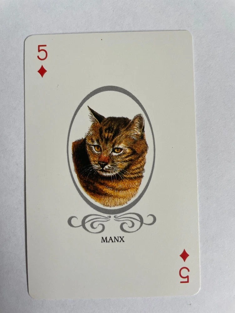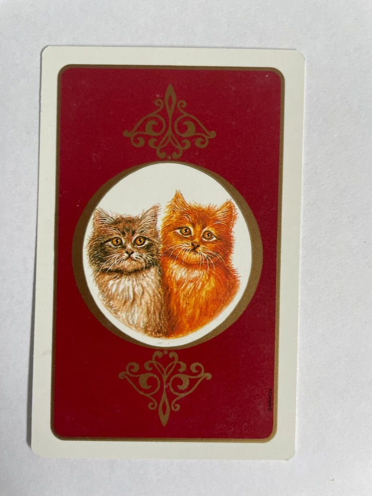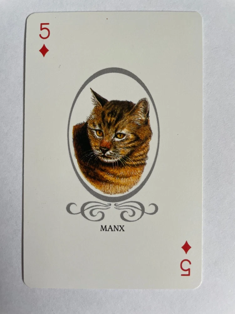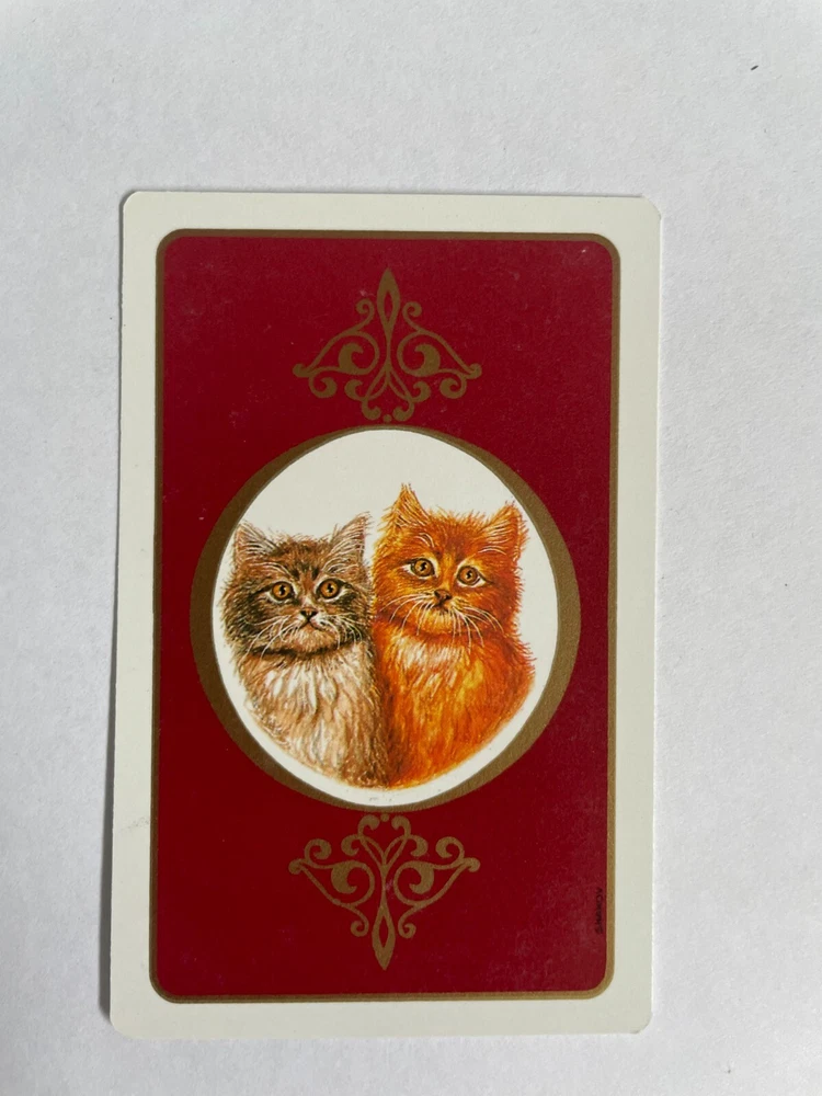 SINGLE CARD only, not a deck/pack of cards.. please read the description and check photos for your appraisal Kitten Cats Vintage Single Swap Playing Card Gold lines borders and details 5 of Diamonds - Manx Condition: Very Good to Excellent - minor surface wear and marks - photos show the front and back of this swap card 1 single card, not deck. Photos form a part of the description and please view them carefully. To save on postage costs, I'm happy to combine shipping for multiple items. If you're interested in doing this, please contact me before you checkout and I'll send you a revised invoice with the combined shipping cost. Please don't pay for each individual item separately. Please note: All swap playing cards listings are for single cards only (not decks of cards and not packs of cards) Most of my items are vintage, collectable and used. Vintage cards may show some signs of age and wear (creases, fading, pen marks etc). Photos form a part of the description and please view them carefully. Please ensure you read the description and are happy with the condition before you purchase. I would accept a return within 30 days from the date of purchase. Buyer must pay return postage and return the item in the same condition as received. NO RETURNS for INTERNATIONAL buyers. All cards purchased will be mailed promptly once payment has been received. I use clean recycled materials to package your items to keep them safe. Items are wrapped in plastic to prevent water damage. I am not held responsible for any items which are lost or stolen in the mailing system if you choose untracked postage. Postage Options are: (1) Untracked Postage - your items are sent via Australia Post standard letter post. If you choose this option, NO insurance/ compensation is available for any loss or damage during transit. (2) Tracked Postage - your items are sent via Australia Post with a tracking number, which is highly recommended. You can track your letter online and compensation is available for any loss or damage during transit. If you have any questions, feel free to contact me. <img src="http://ti2.auctiva.com/web/aswCredit.gif" border="0"><br><a href="http://www.auctiva.com/?how=scLnk2" target="_blank"><img src="http://ti2.auctiva.com/images/sc1line2.gif" border="0"></a> <div style="text-align:center"><a style="text-decoration:none" href="http://mostpopular.sellathon.com/?id=AC287359"><img src="http://www.sellathon.com/Resources/Images/countercredit.gif" border="0"></a></div>