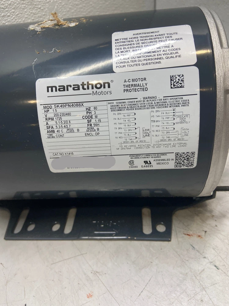 MPN: K1415 Seller Notes: “No factory box” Brand: Marathon Electric AC Phase: Three Phase Model: 5K49PN4088X