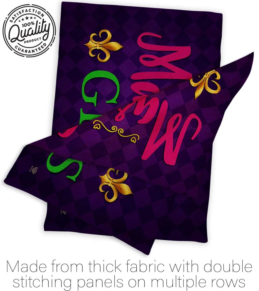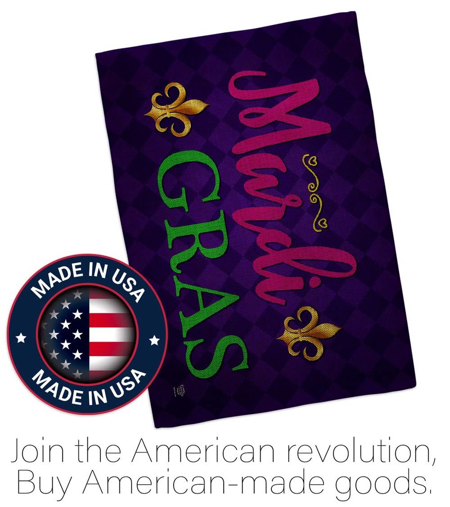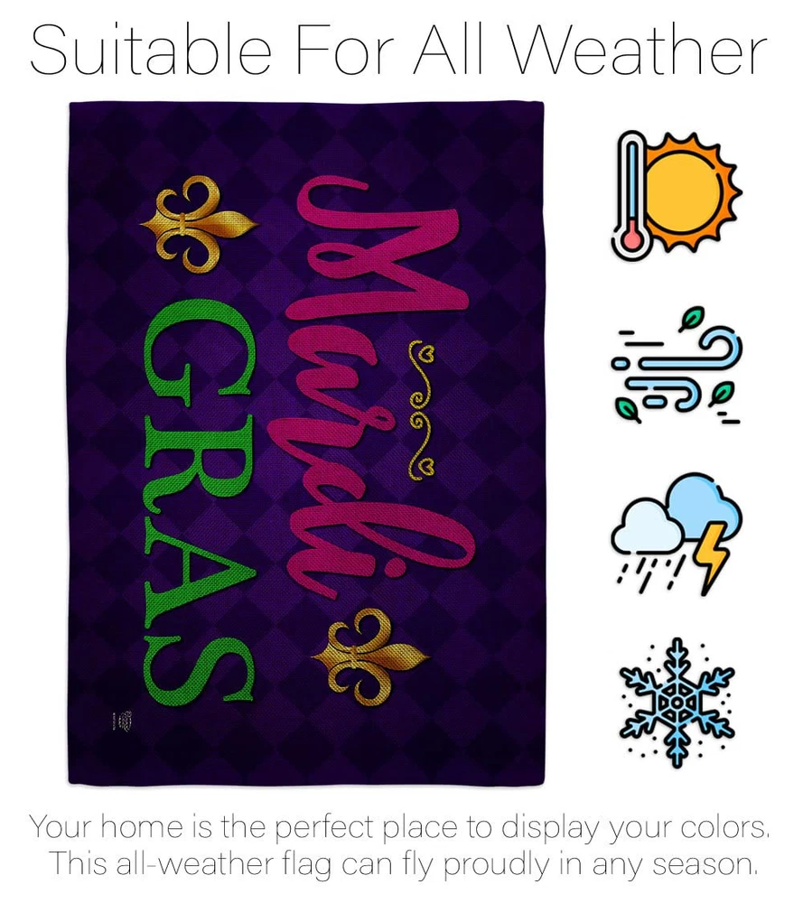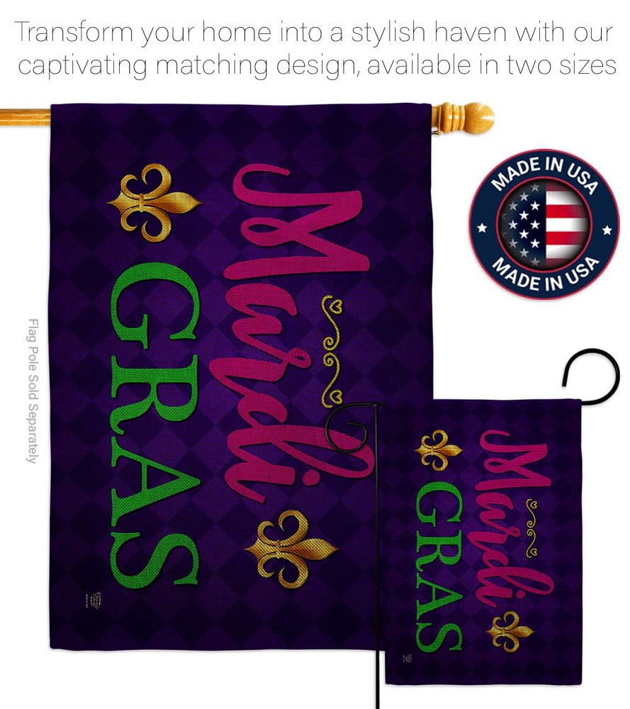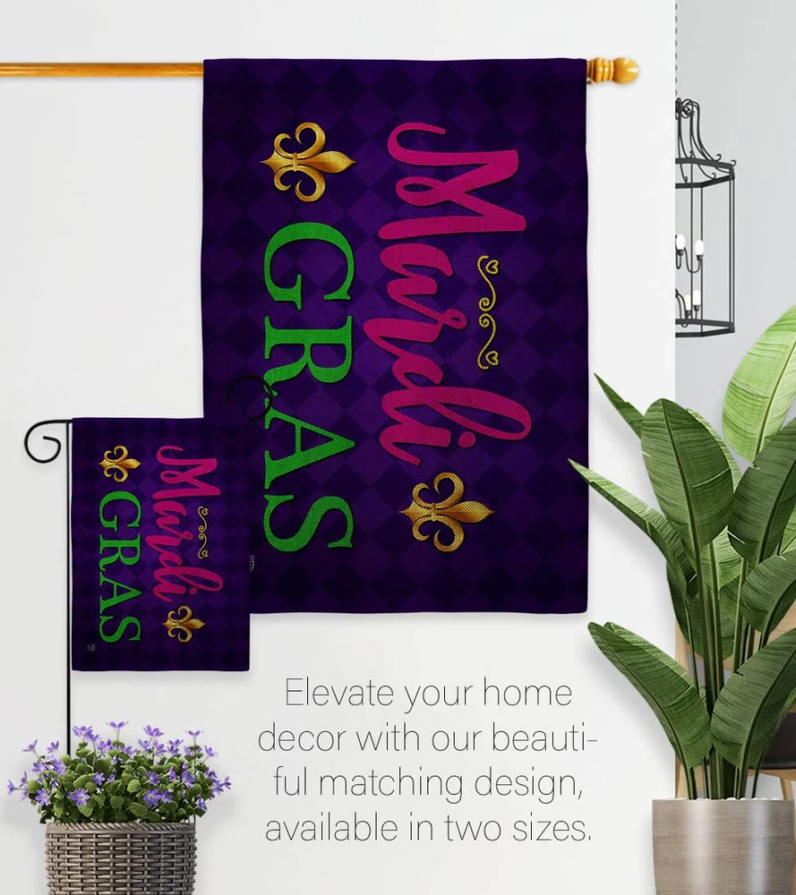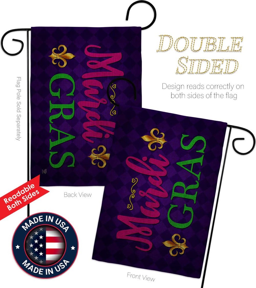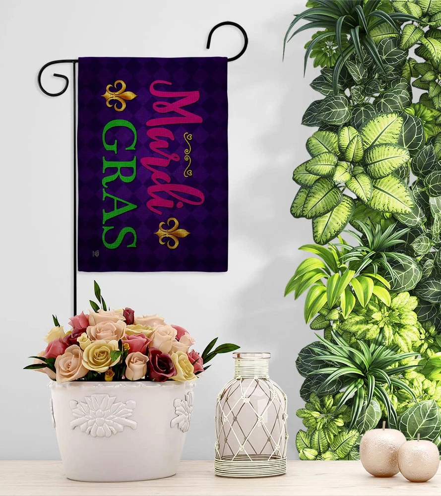 This Mardi Gras garden flag is such a fun pop of color! The double-stitched burlap is super sturdy, and the UV-resistant colors stay bright even in full sun. It fits perfectly on standard flagpoles or brackets (sold separately). Love that it's designed and made in the USA—feels like great quality. Perfect for adding festive vibes to my porch all season long!