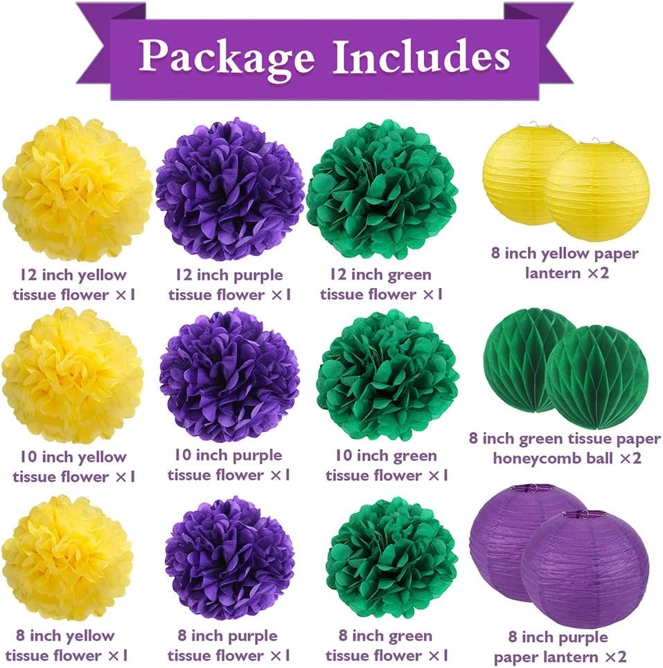 Store New Arrivals Add to Favorite View Feedback Contact Mardi Gras Decorations Fat Tuesday Decorations Mardi Gras Birthday Decorations Mardi Gras Baby Shower Decorations Purple Green Yellow Tissue Poms Paper Lanterns Mardi Gras Party Supplies by Description Product Dimensions 8"L x 8"W Material Paper Item Weight 10.5 ounces Size 15 Piece Set Occasion Birthday Number of Pieces 15 Fat Tuesday/Mardi Gras Party Decorations Set Include: 2pcs 8inch purple paper lanterns, 2pcs 8inch yellow paper lanterns, 2pcs 8inch green honeycomb balls, 9pcs tissue paper pom poms: purple/yellow/green, each color includes: 1*8inch+1*10inch+1*12inch. Give a special touch to your next party with this lovely dark purple dark green yellow theme combination tissue poms poms honeycomb ball and lantern. Now the sized bundle for decorating over a party or gift table. This kit is the hanging party decor for a birthday party, cake smash decoration, baby shower, fat Tuesday theme celebration, mardi gras theme celebration, new orleans mardi gras decorations, new orleans party decorations. Hanging tissue paper lantern/tissue pom poms garland for fat tuesday party supplies/birthday/baby shower/wedding decorations party supplies. And economic way to light up your party.Ships flat,easy to unfold and the lanterns can be used again and again. Product Description Mardi Gras Decorations - Give a special touch to your next party with this lovely dark purple dark green yellow theme combination tissue poms poms honeycomb ball and lantern. Package Include - 2pcs 8inch purple paper lanterns, 2pcs 8inch yellow paper lanterns, 2pcs 8inch green honeycomb balls - 9pcs tissue paper pom poms: purple/yellow/green, each color includes: 1*8inch+1*10inch+1*12inch. Applicable Scenario - This kit is the perfect hanging party decor for a birthday party, cake smash decoration, baby shower, fat Tuesday theme celebration, mardi gras theme celebration, new orleans mardi gras decorations, new orleans party decorations. Party Decoration - Now the perfect sized bundle for decorating over a party or gift table. ABOUT US We offer the best prices around on high quality products. Our E-store includes media such as books, movies, music and games while offering electronics, toys, sporting apparel, clothing, tools, general home, garden items and more. SHIPPING We are always working hard to ensure your package arrives as soon as possible. Please understand that some factors like weather, high postal traffic, and the performance of shipping companies are outside of our control. We offer free shipping to the lower 48 states and ship within 2 business days of payment, usually sooner. We do not accept P.O. Boxes. Please provide a physical address. For shipping outside of the continental USA, we only use eBay's Global Shipping Program.The item is shipped to KY and then sent to the rest of the world. International customers are responsible for all duties and taxes. Continue to check out in order to calculate costs for shipping the item to your country. Messages regarding eBay's Global Shipping Program MUST be directed at eBay EXCLUSIVELY. RETURNS We offer a 30-Day Return Policy on items which you are not completely satisfied with. You have the option for a full-refund or an exchange of the item. No returns are available on items shipped outside of the USA. PAYMENT We accept PayPal. CONTACT US This page content is yet to come Please ad us to your favorite seller and visit again later Thank You CUSTOMER SATISFACTION We try our very best to make sure every customer is completely satisfied. If there's a problem, message us! We're happy to help. WE ACCEPT Copyright © 2021 AutoDS. | All Rights Reserved