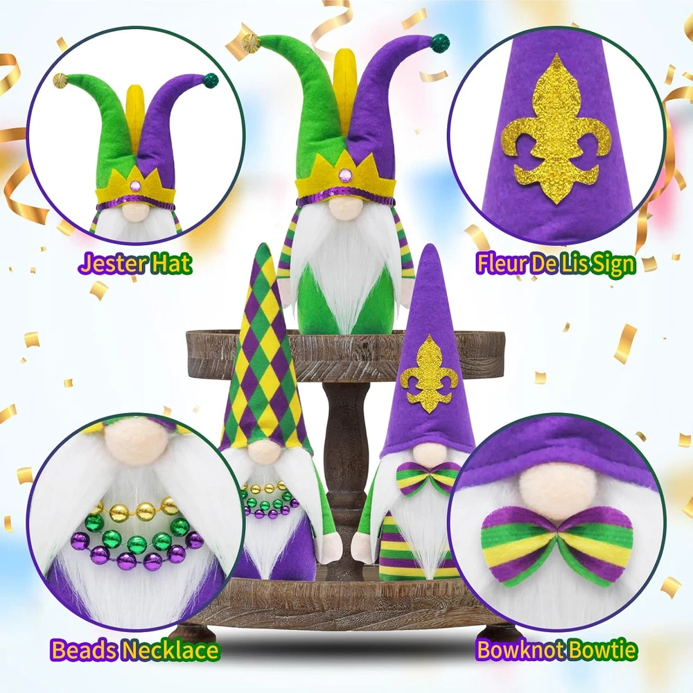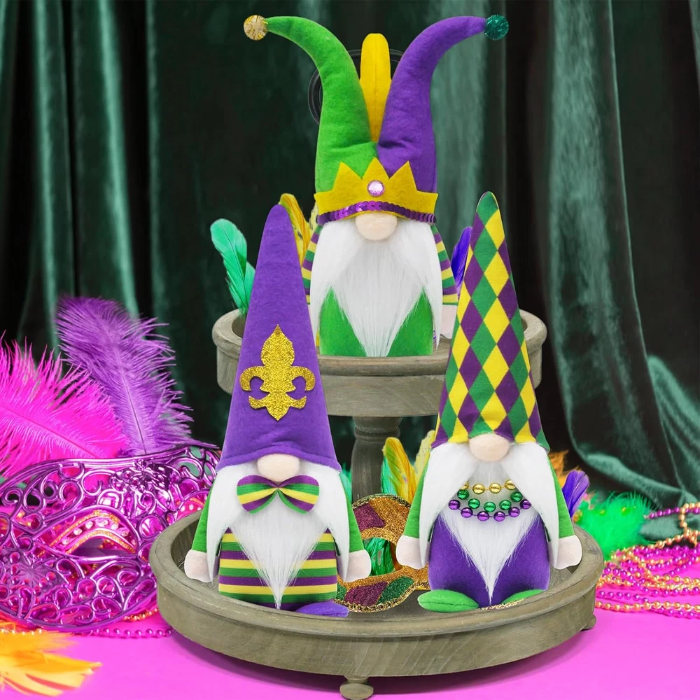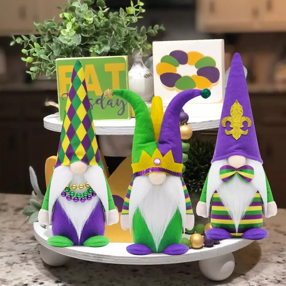 Store New Arrivals Add to Favorite View Feedback Contact Fast deliveries to the customer's home Quality customer service John Make the customers happy! Mardi Gras Gnomes Party Decorations, 3 Pack Mardi Gras Beads, Mask Gnomes Plush Decor, New Orleans Mardi Gras Party Tiered Tray Decor, Mardi Gras Home Office Party Supply Description 【Mardi Gras Gnomes Sets】These adorable Mr.and Mrs. Mardi gras gnomes plush with jester hat fleur de lis sign mardi gras beads necklaces create the festive touch on your mardi gras holiday. And gnomes will bring us good luck, happiness, warmth and a little magical to your home. 【Ideal Mardi Gras Gift】Well crafted mardi gras Gnomes plush is an ideal mardi gras gifts,and other holiday. The adorable mardi gras jester hat are perfect for spreading holiday happiness. Unique gnomes design with fleur de lis sign and mardi gras Beads necklaces are 100% match mardi gras decorations mardi gras theme party decorations mardi gras tiered tray decor masquerade party decorations mardi Gras table decorations new orleans decor mardi Gras home decor. 【Mardi Gras Party Decorations】The mardi gras gnomes sets will be an ideal addition to mardi gras holiday Party , and the mardi gras centerpieces for Party tables. Fleur de Lis sign and mardi gras beads necklaces can easily make your main centerpiece of your mardi gras theme decorations,mardi gras table decorations.Perfect for displaying on a table, shelf or mantel, fireplace. Unique and cute style will bring family happiness. 【Premium Material & Handcrafted】The mardi gras Gnomes are made of plush and felt by professional artisans.The purple yellow and green hats also boots are made of Sunday Angora furry, very soft touch. 【Weighted Base & Poseable】 Each mardi gras gnome decor has a built-in soft iron wire at the top ear hat. Flexiable ears make you can position it as you wish. Their boots are plain to supoort stand on their own, and can be put on anywhere in the home. Fire place, mantle , kitchen, living room. Product Description Item Weight 11.7 ounces Item model number PM23157M Product Dimensions 10 x 5 x 4 inches ABOUT US We offer the best prices around on high quality products. Our E-store includes media such as books, movies, music and games while offering electronics, toys, sporting apparel, clothing, tools, general home, garden items and more. SHIPPING We are always working hard to ensure your package arrives as soon as possible. Please understand that some factors like weather, high postal traffic, and the performance of shipping companies are outside of our control. We offer free shipping to the lower 48 states and ship within 2 business days of payment, usually sooner. We do not accept P.O. Boxes. Please provide a physical address. For shipping outside of the continental USA, we only use eBay's Global Shipping Program. The item is shipped to KY and then sent to the rest of the world. International customers are responsible for all duties and taxes. Continue to 'check out' to calculate costs for shipping the item to your country. Messages regarding eBay's Global Shipping Program MUST be directed at eBay EXCLUSIVELY. RETURNS We offer a 30-Day Return Policy on items in which you are not completely satisfied with. You have the option of a full-refund or an exchange of the item. No returns are available on items shipped outside of the USA PAYMENT We accept PayPal. CONTACT US This page content is yet to come Please ad us to your favorite seller and visit again later Thank You CUSTOMER SATISFACTION We try our very best to make sure every customer is completely satisfied. If there's a problem, message us! We're happy to help. WE ACCEPT