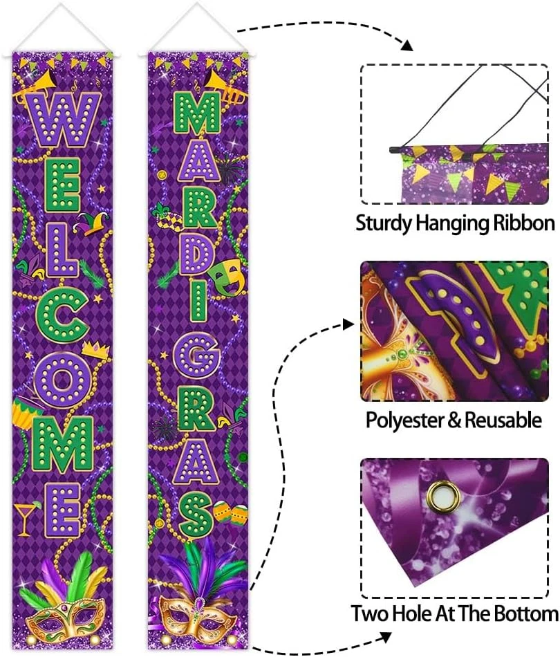 Store New Arrivals Add to Favorite View Feedback Contact Fast deliveries to the customer's home Quality customer service John Make the customers happy! Mardi Gras Porch Banners for Mardi Gras Welcome Decorations New Orleans Masquerade Party Front Door Porch Signs Outdoor Indoor Decor Description Size & Package: 2 Pcs mardi gras porch signs included, both in the size of 71"L x 12"W Material: Polyester fabric, Light weight, no chemical smell; Lasting bright, soft to the touch Wide application: The mardi porch banner make your New Orleans masquerade party decorations, family gathering; home decor, yard decor and other occasions have a strong festival atmosphere; Hang them on front door, entrance of your mardi gras party, fireplace, garden wherever you like to decorate Advantage: Designed by our professional designers, high-resolution computer printing, each porch sign has the best shooting effect Warm tips: Choose a warm washing way, air dry naturally, low temperature ironing Product Description Item model number WA5A5-HT3145 Style Modern Color Style 1 Material Polyester Country of Origin China Item Weight 4.2 ounces Recommended Uses For Product Mardi Gras celebrations, themed parties Product Dimensions 71"L x 12"W Included Components One Pair Porch Sign ABOUT US We offer the best prices around on high quality products. Our E-store includes media such as books, movies, music and games while offering electronics, toys, sporting apparel, clothing, tools, general home, garden items and more. SHIPPING We are always working hard to ensure your package arrives as soon as possible. Please understand that some factors like weather, high postal traffic, and the performance of shipping companies are outside of our control. We offer free shipping to the lower 48 states and ship within 2 business days of payment, usually sooner. We do not accept P.O. Boxes. Please provide a physical address. For shipping outside of the continental USA, we only use eBay's Global Shipping Program. The item is shipped to KY and then sent to the rest of the world. International customers are responsible for all duties and taxes. Continue to 'check out' to calculate costs for shipping the item to your country. Messages regarding eBay's Global Shipping Program MUST be directed at eBay EXCLUSIVELY. RETURNS We offer a 30-Day Return Policy on items in which you are not completely satisfied with. You have the option of a full-refund or an exchange of the item. No returns are available on items shipped outside of the USA PAYMENT We accept PayPal. CONTACT US This page content is yet to come Please ad us to your favorite seller and visit again later Thank You CUSTOMER SATISFACTION We try our very best to make sure every customer is completely satisfied. If there's a problem, message us! We're happy to help. WE ACCEPT