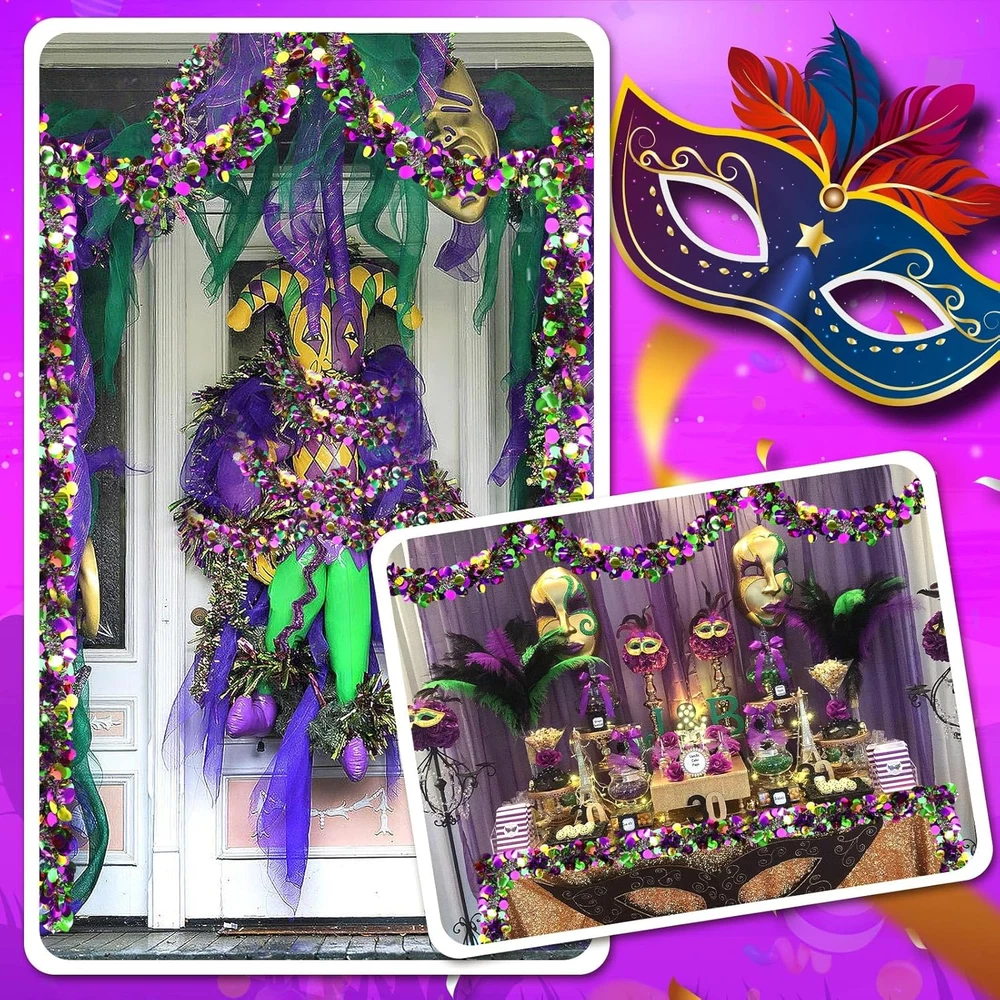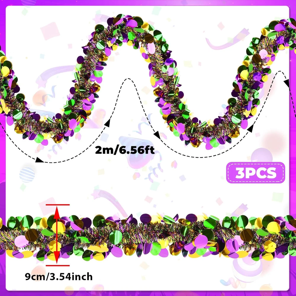 Store New Arrivals Add to Favorite View Feedback Contact Fast deliveries to the customer's home Quality customer service John Make the customers happy! Mardi Gras Tinsel Garland Mardi Gras Decorations Purple Green Gold Metallic Twist Garland Carnival Hanging Ornament for Mardi Gras Party Indoor Outdoor Home Supplies Decor, 3 Pcs 19.7 FT Description Light Up the Carnival Celebration Atmosphere: The Mardi Gras tinsel garland contains 3 pieces, each of which is 2 meters long and the total length reaches 6 meters, making Mardi gras garland the ideal decoration choice for you to celebrate carnival, parties and festivals. Each Mardi Gras garland outdoor is designed with vivid colors and gorgeous metallic luster, which can instantly light up any occasion Suitable Size: The Mardi gras decor is 2 m/6.56 feet long and the width is 9 cm /3.54 inch. The total length of the Mardi Gras decorations for party is 6 m/ 19.7 CM. The Mardi Gras decorations for party combine green, purple and gold, and shine in the light, adding a touch of vivid color to the party. Whether worn on the body or hung on the wall, whether indoors or outdoors, hung on the wall, ceiling, door and other positions, can create a warm atmosphere Premium Materials: Carnival purple green gold garland is made of good-quality materials to ensure the durability of each Mardi Gras garland in use. The Mardi Gras garland outdoor is not only light and easy to carry, but also very simple to install. Just hang Mardi Gras decorations where you want to decorate, and you can instantly enhance the festival atmosphere. Whether birthday party, wedding celebration or company event, can provide you with lasting decorative effects Multi-Occasion Application: The Mardi Gras garland indoor is very suitable for various occasions, whether carnival celebration, party, holiday celebration, family gathering or outdoor activities, the Mardi Gras garland outdoor can be ideally matched with other decorations to add infinite vitality. Through clever collocation, you can easily create an unforgettable celebration space and bring surprises and pleasant experiences to your relatives and friends. Let every party be full of laughter Ideal Carnival Gift: The Mardi Gras ornaments are not only suitable for personal use, but also very ideal as gift choice for relatives and friends. Give this beautiful Mardi Gras party decorations to relatives and friends on special days such as carnival, birthday and holiday party, and convey your wishes. Let them feel your full blessing and love at the moment of celebration. Whether as a birthday present, a holiday gift or a surprise at a party, the Mardi Gras decorations for party can add colorful Product Description MARFOREVER Mardi Gras Tinsel Garland Our Mardi Gras tinsel garland is made of good-quality materials to ensure the durability of each Mardi Gras garland in use. The Mardi Gras garland outdoor is not only light and easy to carry, but also very simple to install. Just hang Mardi Gras decorations where you want to decorate, and you can instantly enhance the festival atmosphere. Whether birthday party, wedding celebration or company event, can provide you with lasting decorative effects Multi-Occasion Application The Mardi Gras tinsel garland is very suitable for various occasions, whether carnival celebration, party, holiday celebration, family gathering or outdoor activities, the Mardi Gras garland outdoor can be ideally matched with other decorations to add infinite vitality. Through clever collocation, you can easily create an unforgettable celebration space and bring surprises and pleasant experiences to your relatives and friends. Let every party be full of laughter Ideal Gift Choice The Mardi Gras decorations are not only suitable for personal use, but also very ideal as gift choice for relatives and friends. Give this beautiful Mardi Gras decorations to relatives and friends on special days such as carnival, birthday and holiday party, and convey your wishes. Let them feel your full blessing and love at the moment of celebration. Whether as a birthday present, a holiday gift or a surprise at a party, the Mardi Gras decorations for party can add colorful Item model number 8448 Item Shape Green Purple Gold Color Green Purple Gold Material Plastic Country of Origin China Item Weight 5.6 ounces Shape Green Purple Gold Package Dimensions 10.24 x 5.98 x 1.97 inches ABOUT US We offer the best prices around on high quality products. Our E-store includes media such as books, movies, music and games while offering electronics, toys, sporting apparel, clothing, tools, general home, garden items and more. SHIPPING We are always working hard to ensure your package arrives as soon as possible. Please understand that some factors like weather, high postal traffic, and the performance of shipping companies are outside of our control. We offer free shipping to the lower 48 states and ship within 2 business days of payment, usually sooner. We do not accept P.O. Boxes. Please provide a physical address. For shipping outside of the continental USA, we only use eBay's Global Shipping Program. The item is shipped to KY and then sent to the rest of the world. International customers are responsible for all duties and taxes. Continue to 'check out' to calculate costs for shipping the item to your country. Messages regarding eBay's Global Shipping Program MUST be directed at eBay EXCLUSIVELY. RETURNS We offer a 30-Day Return Policy on items in which you are not completely satisfied with. You have the option of a full-refund or an exchange of the item. No returns are available on items shipped outside of the USA PAYMENT We accept PayPal. CONTACT US This page content is yet to come Please ad us to your favorite seller and visit again later Thank You CUSTOMER SATISFACTION We try our very best to make sure every customer is completely satisfied. If there's a problem, message us! We're happy to help. WE ACCEPT