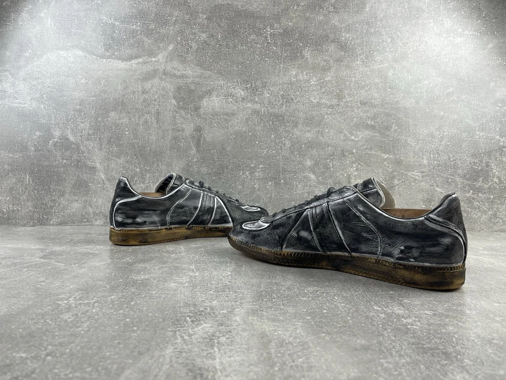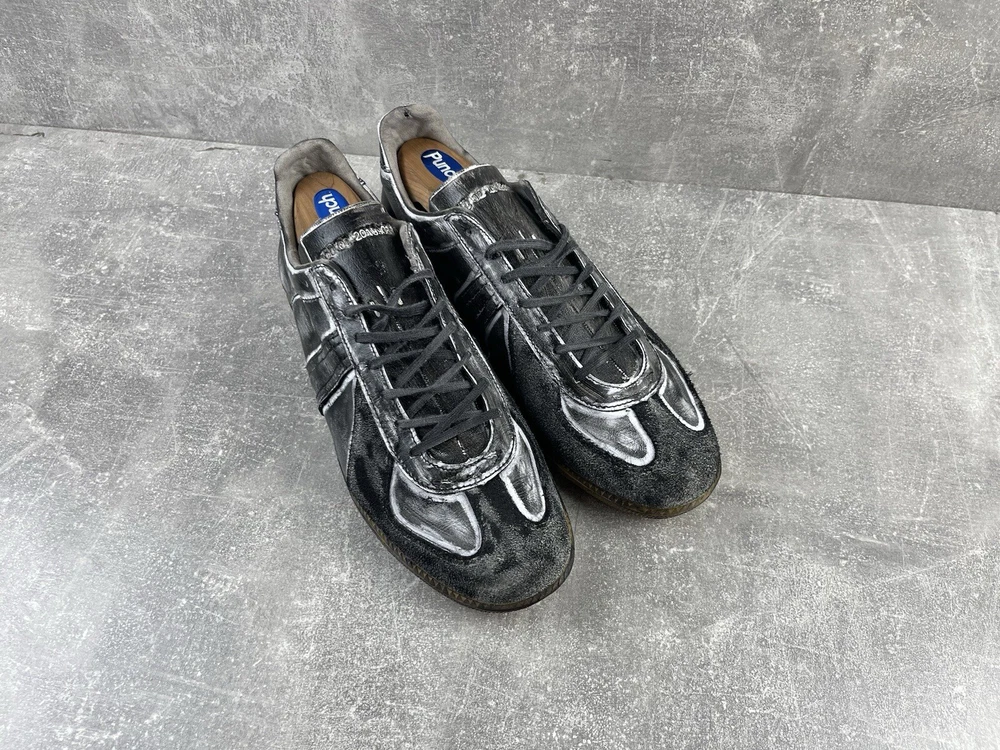 Margiela Avant Garde Opium Custom BW Sport Sneakers Shoes Size 12(46/30cm) Made In Germany.(custom) For customization I used American Angelus paint. Each pair is Unique! When the Berlin Wall fell in 1989, some 500,000 soldiers had been issued Bundeswehr Sportschuche. When the Cold War came to an end, the Bundeswehr was subsequently, and rather dramatically, downsized. As a result, hundreds of thousands of pairs of GATs were in the possession of suddenly ordinary civilians who no longer needed them for service use. And as recently discharged soldiers are wont to do in a recently unified country undergoing economic redevelopment in uncertain times, many of them sold their standard issue gear—including the BW Sport trainers—to army surplus stores. German military garb tends to be fetishized among army surplus fans; the force’s camouflage considered to be among the most popular in the world, which helped boost the popularity of the BW Sport. More importantly though, it was a well-designed and simple sneaker that was supremely versatile. A crisp white leather upper and contrasting gum rubber sole had the hallmarks of a wardrobe staple, while also proving to be durable—evidenced by the fact that standard issue pairs are still wearable and being sold on the secondary market. It shouldn’t come as any surprise, then, that Belgian designer Martin Margiela happened upon a pair at some point in the '90s—if we’re to trust the brief description of events included on the product’s label, Margiela discovered the silhouette in Austria, not Germany, which is a testament to the GAT's cross-border mobility after the fall of the Iron Curtain. Margiela was clearly smitten with the authentic version and purchased dozens of pairs of BW Sport, which ended up on models at his eponymous label’s Spring/Summer 1999 Artisanal presentation . The method was to “produce” the earliest Maison Margiela German Army Trainers, with the label buying up vintage BW Sport sneakers, cleaning them, changing the laces and embossing the Maison’s iconic numeric branding on the tongue of the shoes; in some cases the pairs were repainted as well, which was a common thread in Margiela’s work . Arguably, the most famous pairs from this era are those from 2001-2002 , when the Maison Margiela team painted over the gum soles on the adidas-produced BW Sport and added handwritten notes on the uppers. Not only did this make each pair unique, but it created pieces that had come into direct contact with the notoriously reclusive and secretive Margiela design team. It’s interesting to note that this concept has been re-appropriated in recent years by the likes of Pharrell Williams (on adidas sneakers , no less!) and Virgil Abloh . Alas, Maison Margiela could only get away with flipping surplus BW Sport trainers at an astronomical markup for so long before having to move on from the vintage sneakers. At some point in the early to mid-’00s, Maison Margiela started producing its own BW Sport replica sneakers. They would be dubbed the “Replica” and have since become the menswear equivalent of Margiela’s ubiquitous Tabi Boot —a brand staple from season to season that serves as a blank canvas of sorts for the design team and that seasonal design brief. Unlike the Tabi , though, the Replica is almost laughably simple in its purest form, with white leather on the upper, off-white suede accents, and, of course, the gum sole. Still, every season is filled with new Replicas, each offering a glimpse at the season’s overarching story, whether that be by being splattered with paint , kitted out with mock-galoshes, or offered in vibrant hues of a luxurious leather. The parcel is in normal operation for 7-15 days. But there are delayed, be patient and understanding, it does not depend on me. It happens that the parcel arrives within 30 -45 days. Please treat with understanding. Watch all my items. New items every week. If you like our stuff, SUBSCRIBE! Waiting for your offers. I am ready to work on a permanent basis, I am ready to sell a lot of things in bulk, I go shopping every day! USA - UPS USPS 21 - 30 days or Ukrposhta Asia EU - Standard Ship 21-30 days Other - Standard Ship (Avia ship 30-45 days) There is a very fast delivery option in 7-10 days. The price is different for each country.