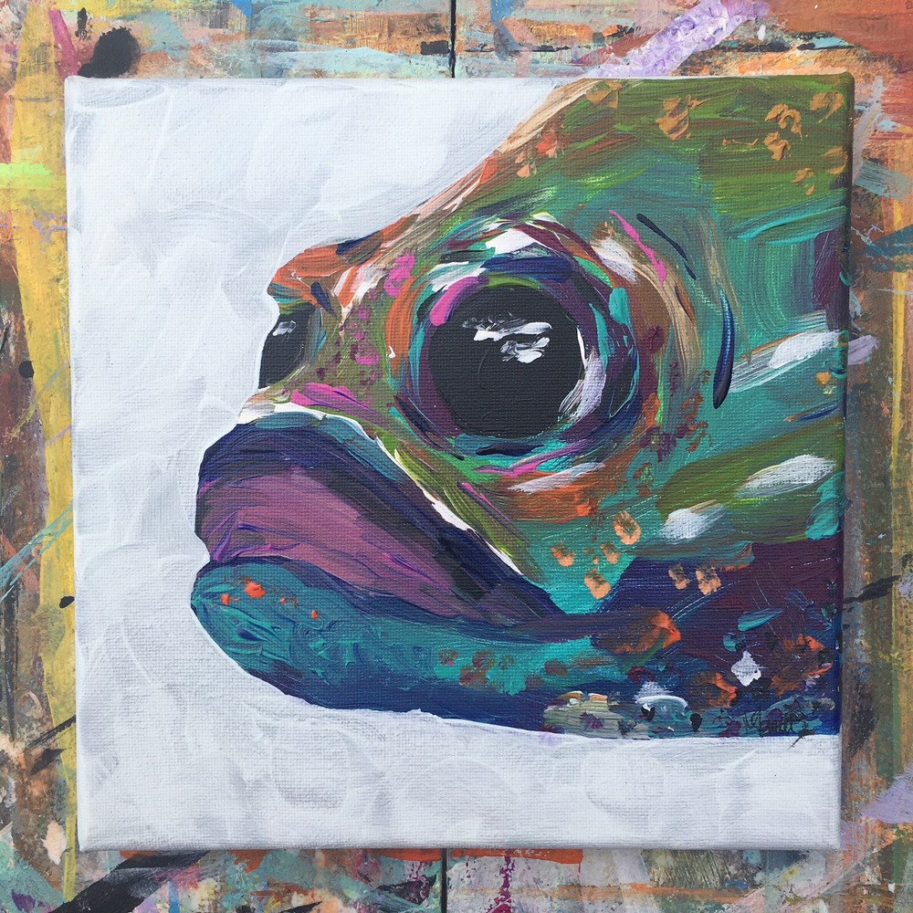 This is your chance to own a one of a kind SIGNED ORIGINAL painting from a contemporary artist. This is NOT a print, this is an original painting. DETAILS: Artist: Maria Scalf Title: Fish Size: 8x8 Media: Acrylic on stretched Canvas. Ready to hang. No frame necessary. Artist Info: Husband and wife, Matt and Maria Scalf are contemporary artists who live in the foothills of the Blue Ridge Mountains of North Carolina.. Item: 845 Fast Shipping All orders will ship within 1 business day. Monday-Friday (Except Holidays) Please check out our other art!