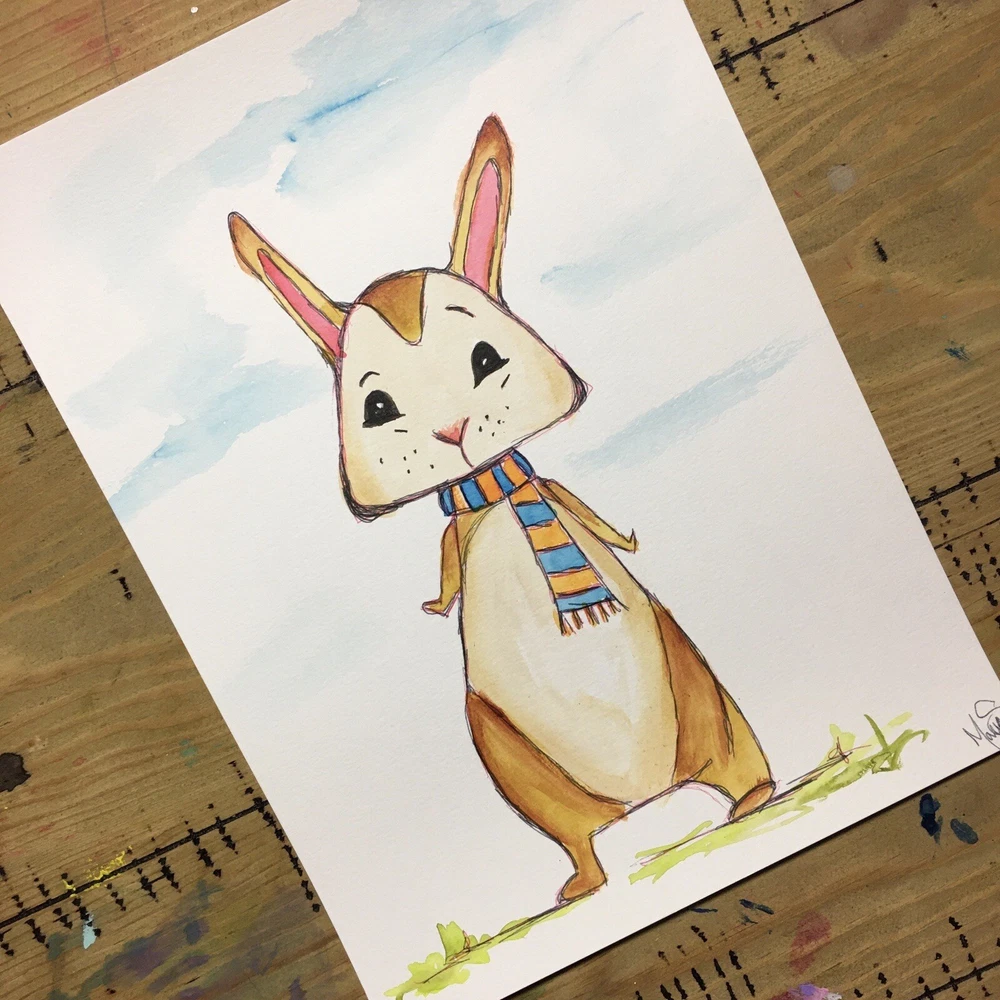 This is your chance to own a one of a kind SIGNED ORIGINAL painting from a contemporary artist. This is NOT a print, this is an original painting. DETAILS: Artist: Maria Scalf Title: Bunny Size: 9x12 Media: Watercolor on Paper. Cold Press 140lb 300g paper. Note: All water color paintings will come without a frame and will need to be framed before hanging. Artist Info: Husband and wife, Matt and Maria Scalf are contemporary artists who live in the foothills of the Blue Ridge Mountains of North Carolina. Item:1285 Fast Shipping All orders will ship within 1 business day. Monday-Friday (Except Holidays) Please check out our other art! Check out our website.
