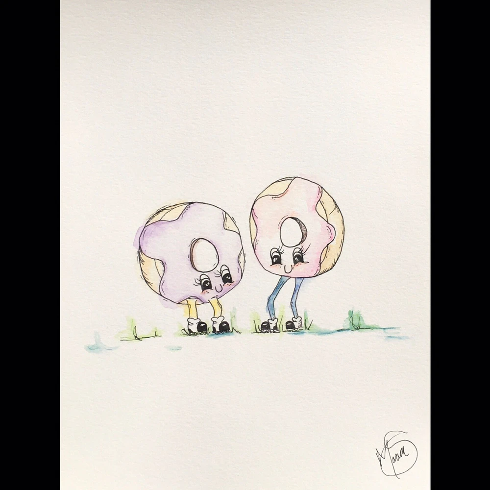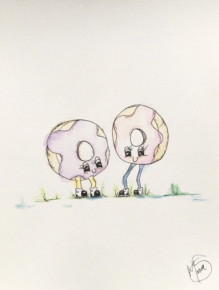 This is your chance to own a one of a kind SIGNED ORIGINAL painting from a contemporary artist. This is NOT a print, this is an original painting. DETAILS: Artist: Maria Scalf Title: Donut Time Size: 9x12 Media: Watercolor on Paper. Cold Press 140lb 300g paper. Note: All water color paintings will come without a frame and will need to be framed before hanging. Artist Info: Husband and wife, Matt and Maria Scalf are contemporary artists who live in the foothills of the Blue Ridge Mountains of North Carolina.. Item:582/D27 Fast Shipping All orders will ship within 1 business day. Monday-Friday (Except Holidays) Please check out our other art! Check out our website.