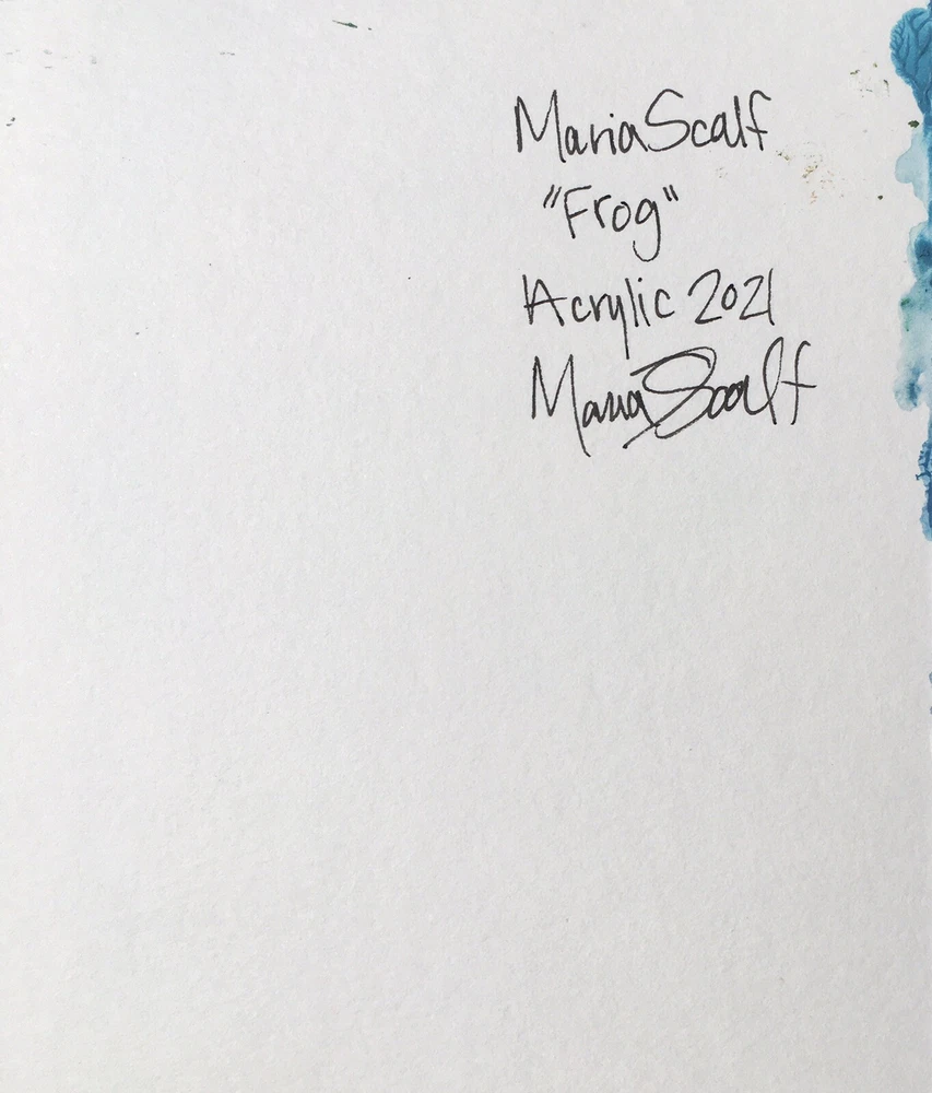 This is your chance to own a one of a kind SIGNED ORIGINAL painting from a contemporary artist. This is NOT a print, this is an original painting. DETAILS: Artist: Maria Scalf Title: Frog Size: 9x12 Media: Acrylic on Paper. Cold Press 140lb 300g paper. Note: All paintings will come without a frame and will need to be framed before hanging. Artist Info: Husband and wife, Matt and Maria Scalf are contemporary artists who live in the foothills of the Blue Ridge Mountains of North Carolina.. Item: 612 Fast Shipping All orders will ship within 1 business day. Monday-Friday (Except Holidays) Please check out our other art!