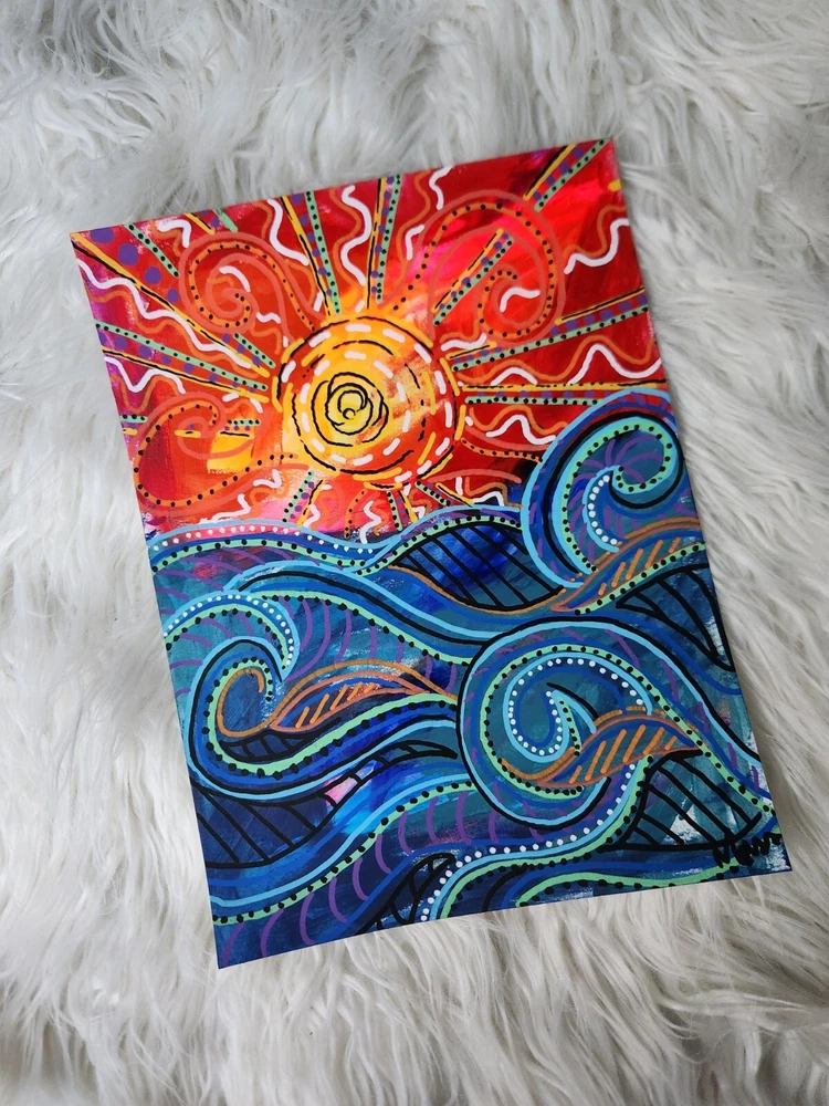 This is your chance to own a one of a kind SIGNED ORIGINAL painting from a contemporary artist. This is NOT a print, this is an original painting. DETAILS: Artist: Maria Scalf Title: catch the sun Size: 9x12 Media: Acrylic on Paper. Cold Press 140lb 300g paper. Note: All paintings will come without a frame and will need to be framed before hanging. Artist Info: Husband and wife, Matt and Maria Scalf are contemporary artists who live in the foothills of the Blue Ridge Mountains of North Carolina. Item:1555 Fast Shipping All orders will ship within 1 business day. Monday-Friday (Except Holidays) Please check out our other art!