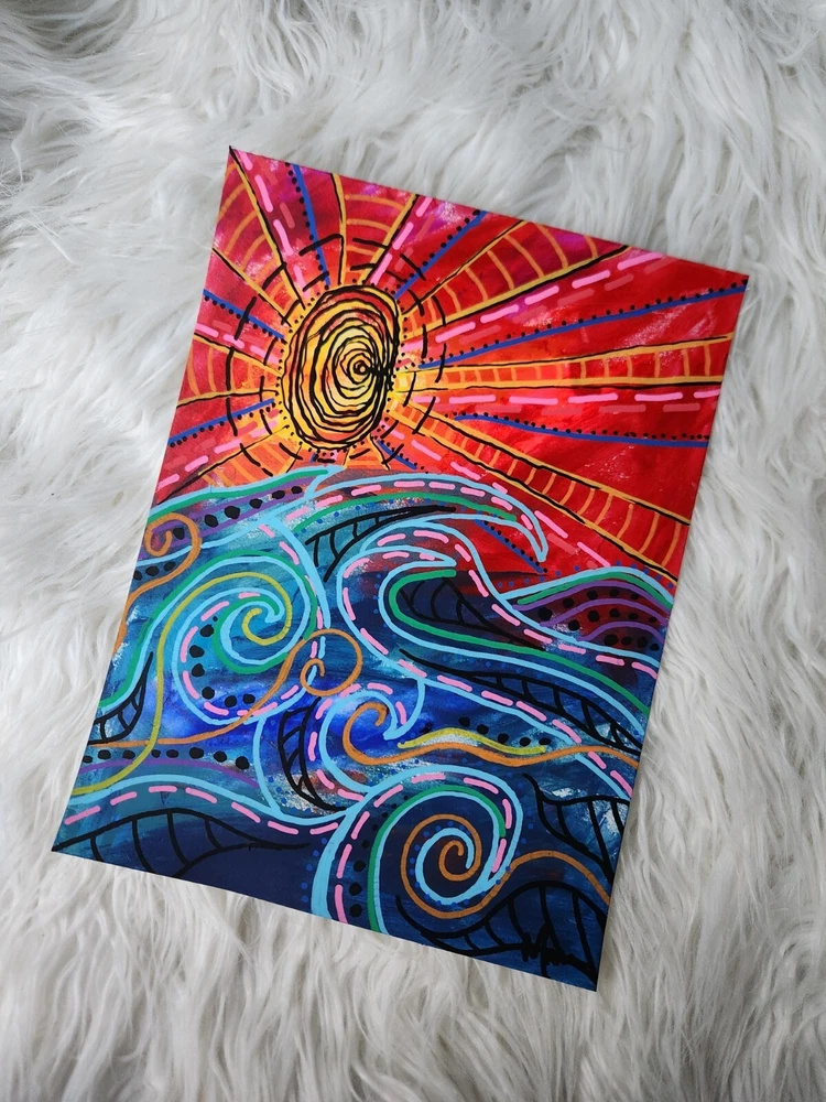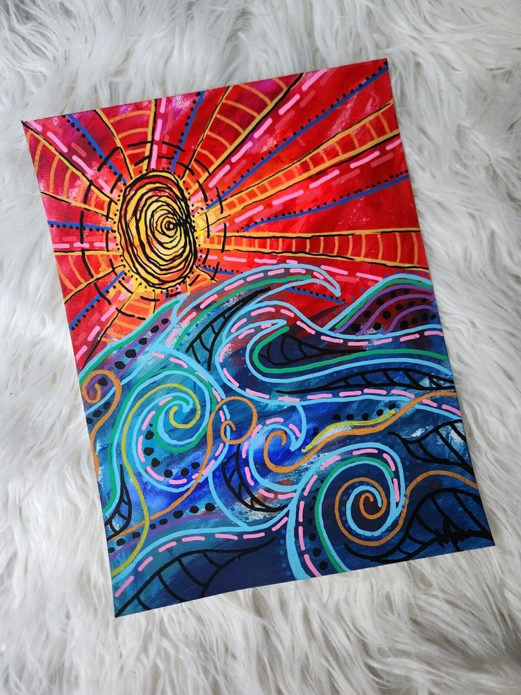 This is your chance to own a one of a kind SIGNED ORIGINAL painting from a contemporary artist. This is NOT a print, this is an original painting. DETAILS: Artist: Maria Scalf Title: catch the sun Size: 9x12 Media: Acrylic on Paper. Cold Press 140lb 300g paper. Note: All paintings will come without a frame and will need to be framed before hanging. Artist Info: Husband and wife, Matt and Maria Scalf are contemporary artists who live in the foothills of the Blue Ridge Mountains of North Carolina. Item:1556 Fast Shipping All orders will ship within 1 business day. Monday-Friday (Except Holidays) Please check out our other art!