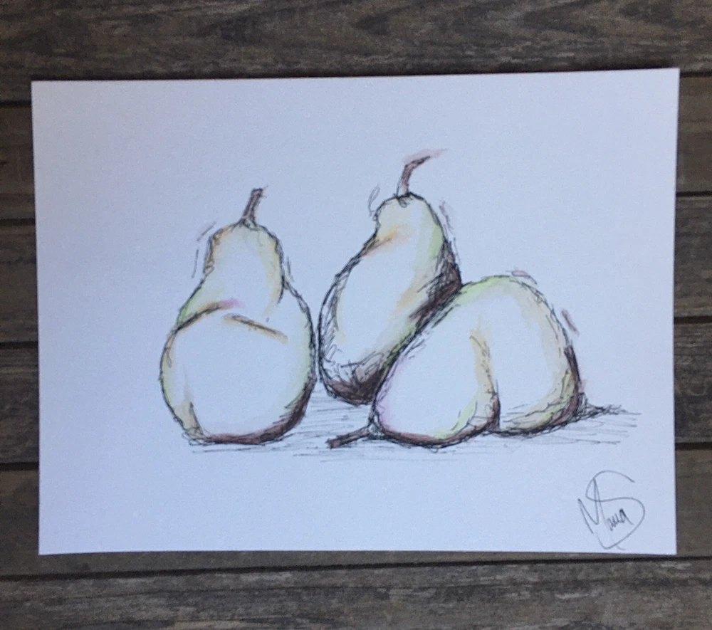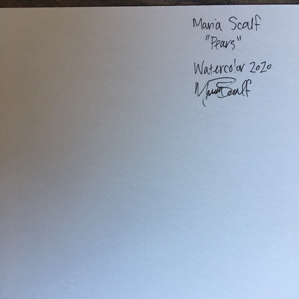 This is your chance to own a one of a kind SIGNED ORIGINAL painting from a contemporary artist. This is NOT a print, this is an original painting. DETAILS: Artist: Maria Scalf Title: Pears Size: 9x12 Media: Watercolor on Paper. Cold Press 140lb 300g paper. Note: All water color paintings will come without a frame and will need to be framed before hanging. Artist Info: Husband and wife, Matt and Maria Scalf are contemporary artists who live in the foothills of the Blue Ridge Mountains of North Carolina.. Item: 300/A289 Fast Shipping All orders will ship within 1 business day. Monday-Friday (Except Holidays) Please check out our other art! Check out our website.